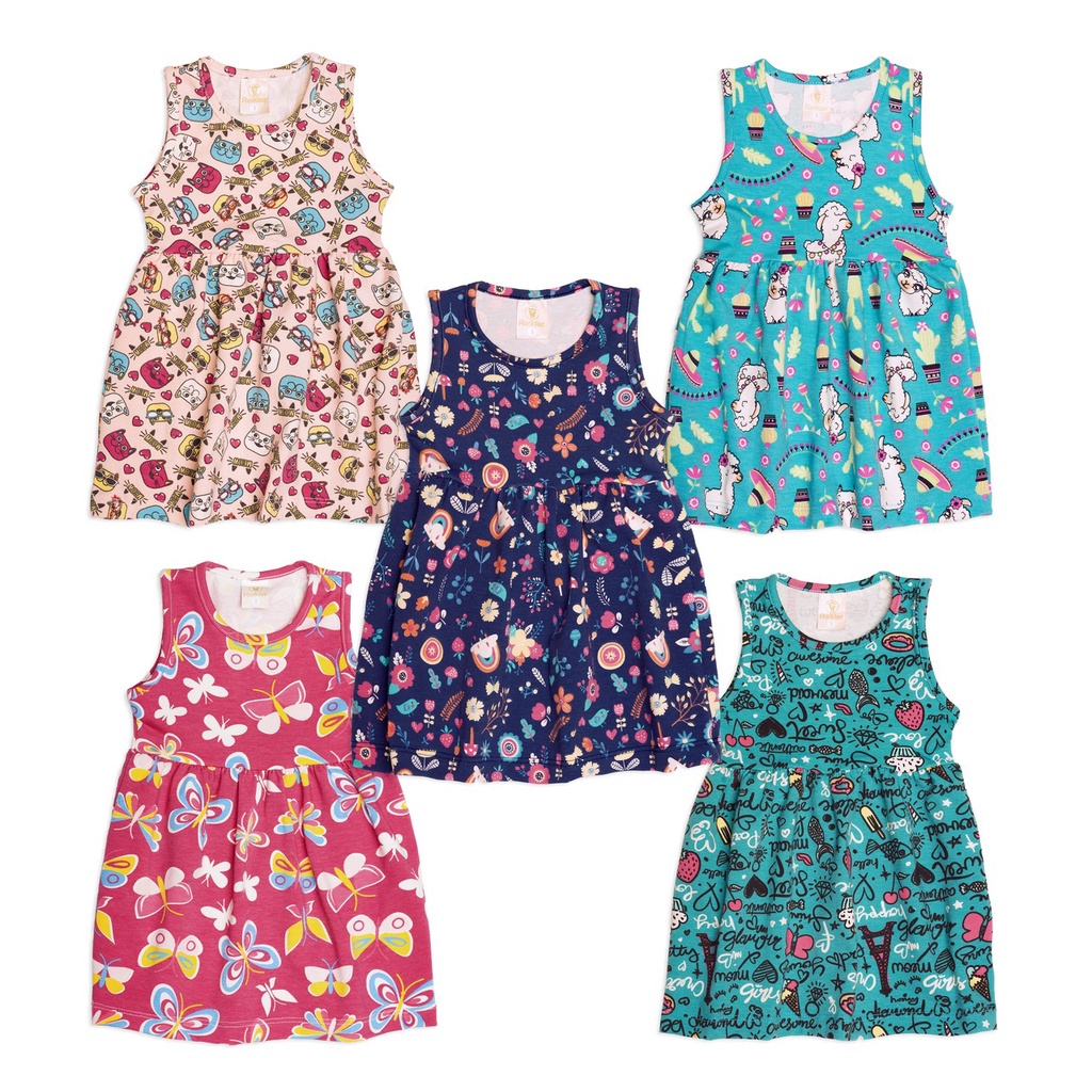 Kit 5 Vestidos Sortidos Infantil De Cotton Algodão Menina Juvenil Cotton Confortável
