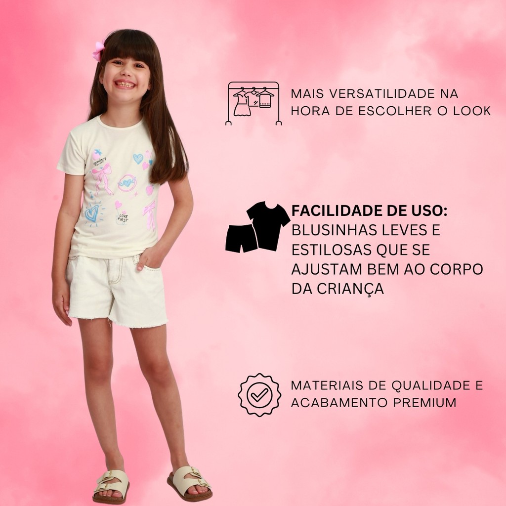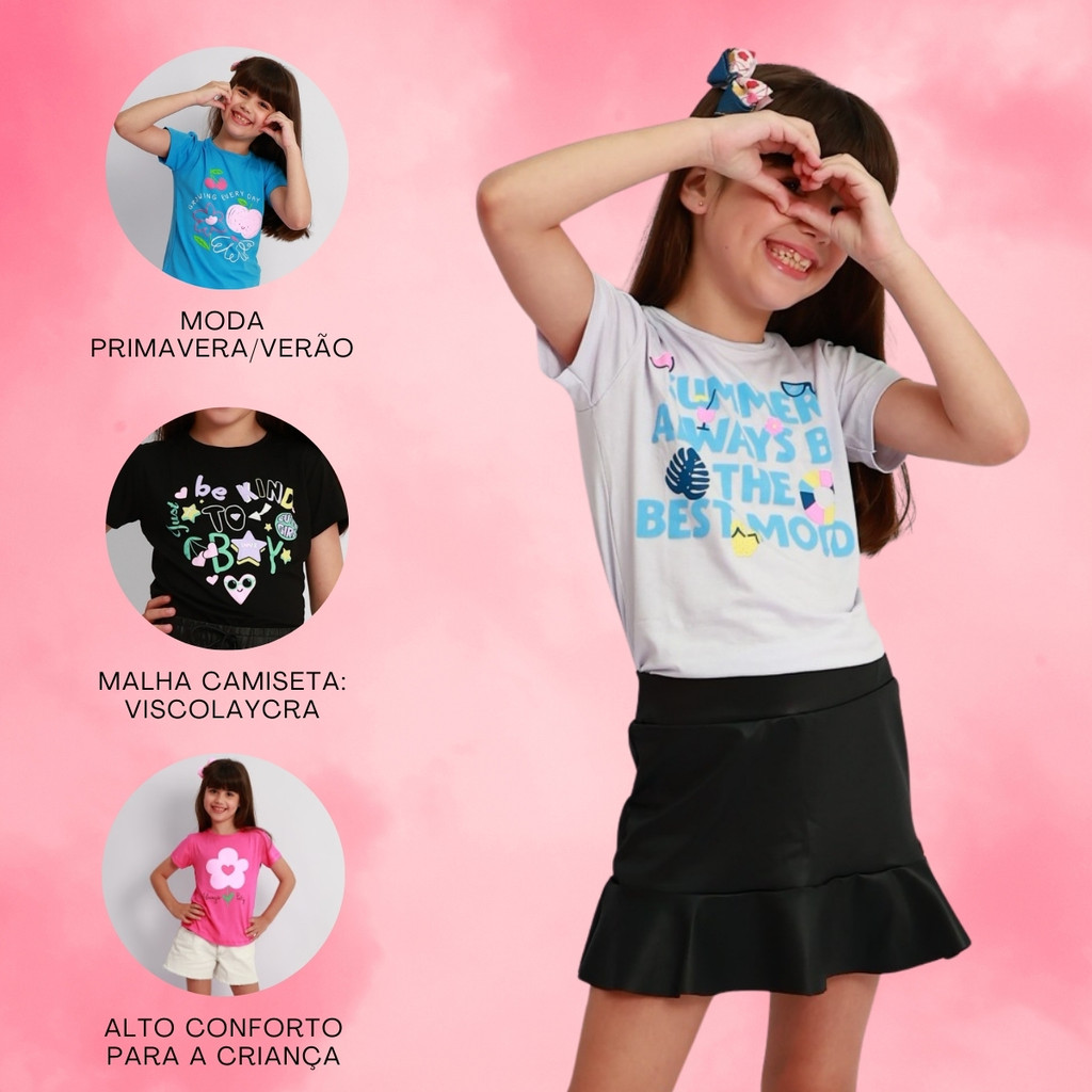 Kit 4 Tshirt Infantil Menina Blusinha Feminina Blusa Manga Curta Verão Feminino Bebê Sortido
