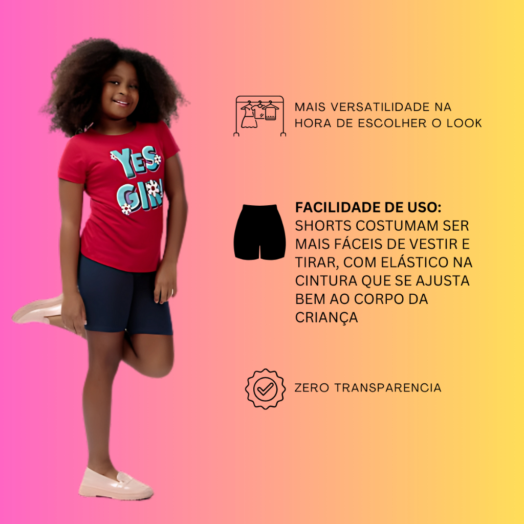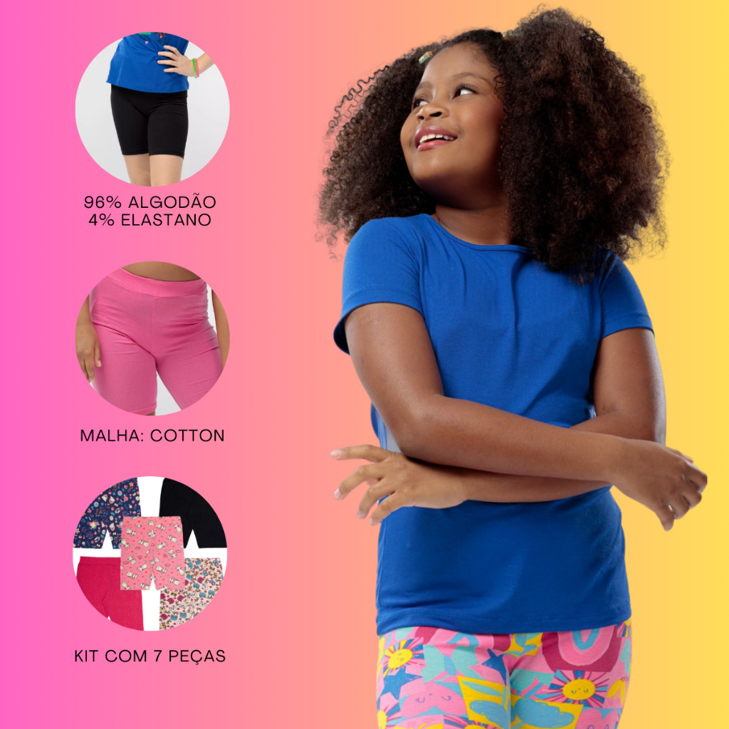 Shorts Ciclista Bermuda Infantil Feminino De Cotton Kit 2 Peças Sortidas