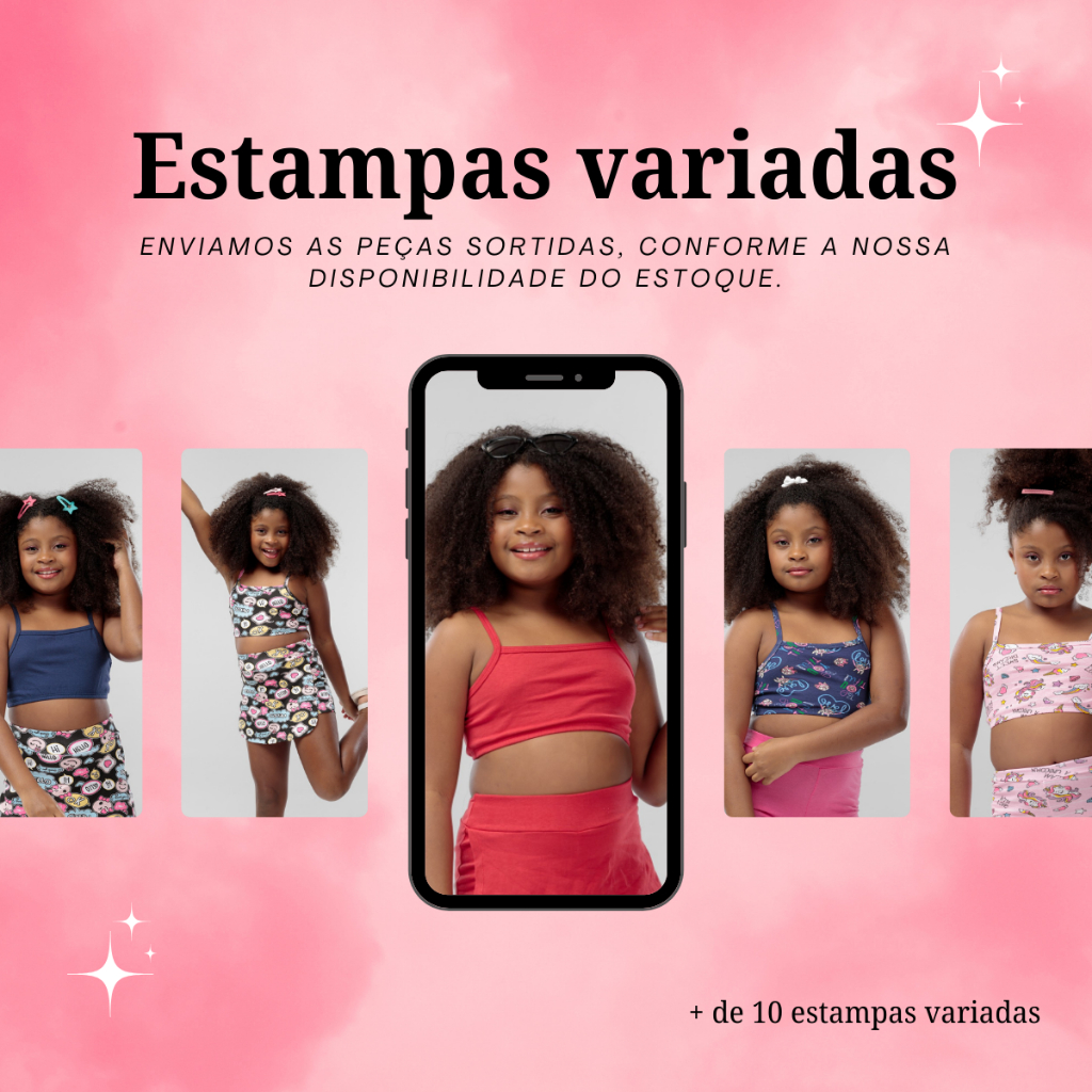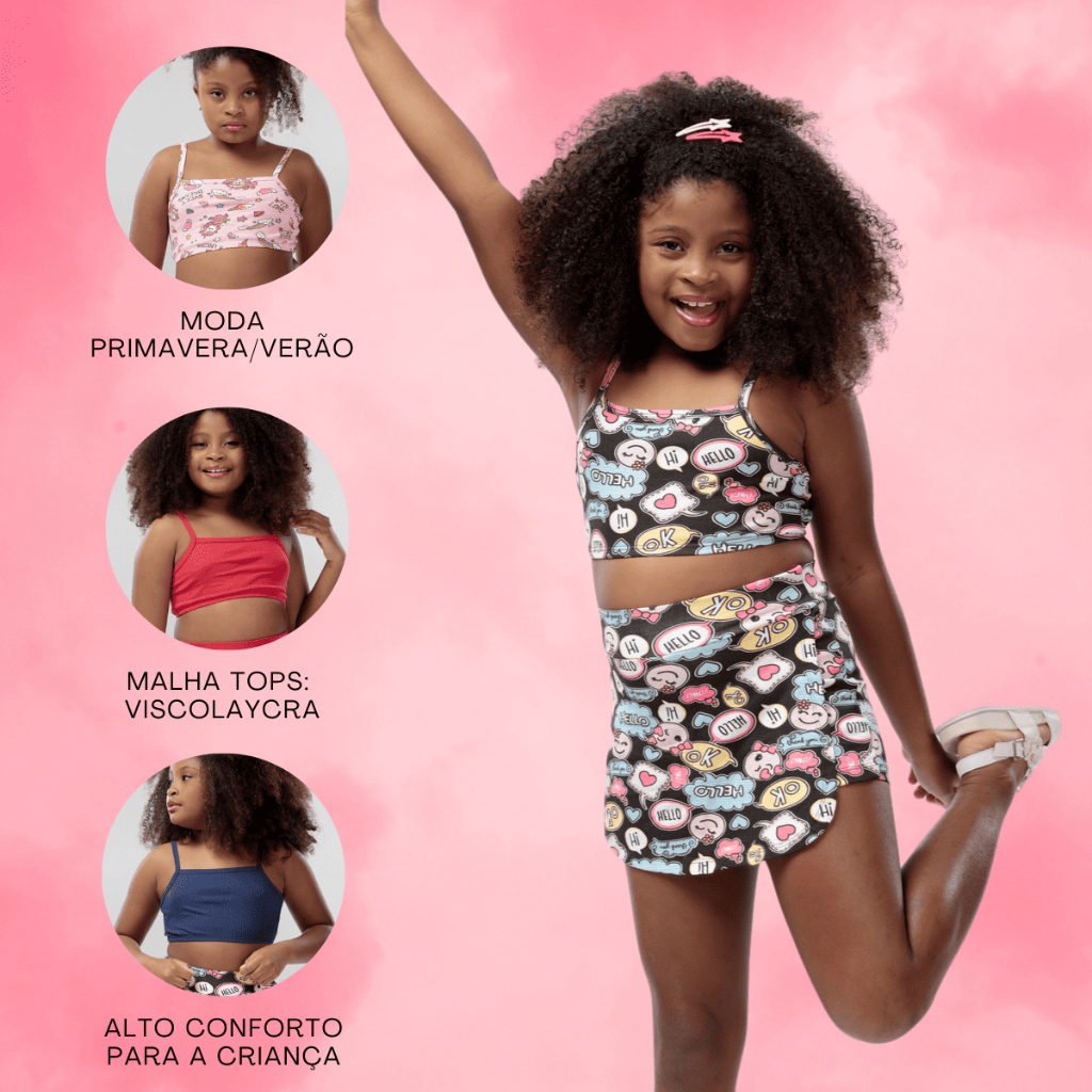 Top Infantil Cotton Feminino Kit com 5 Peças Sortidas Confortáveis Sem Bojo Verão
