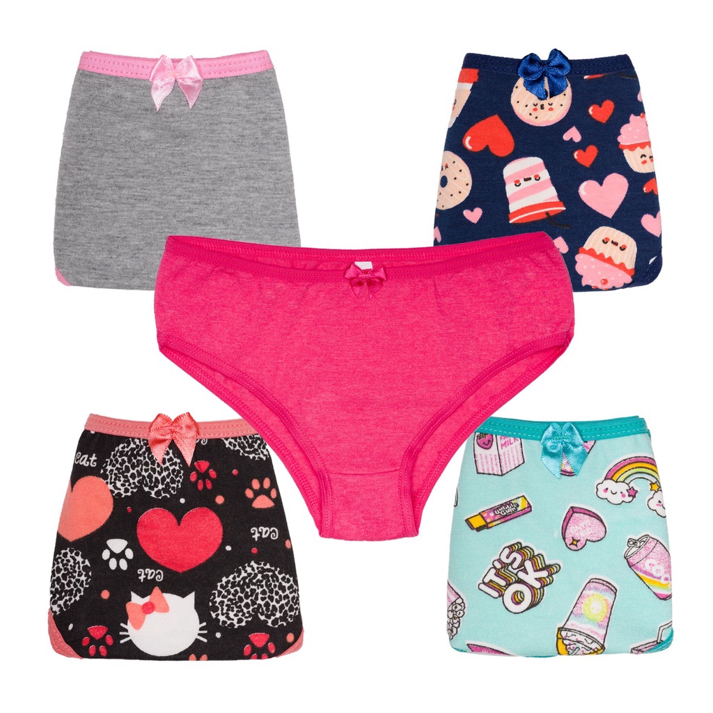 Kit 3 Peça Calcinha Infantil De Cotton Sortida Menina Infantil Algodão Combo
