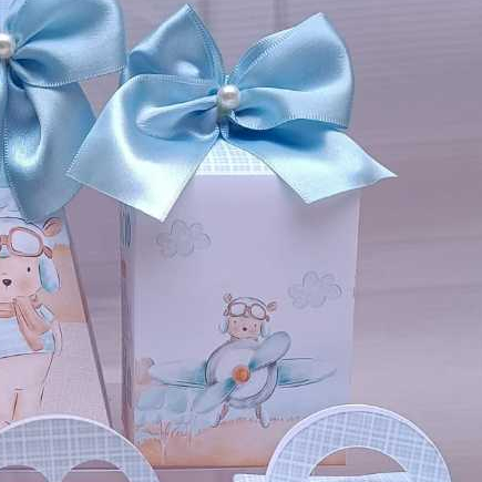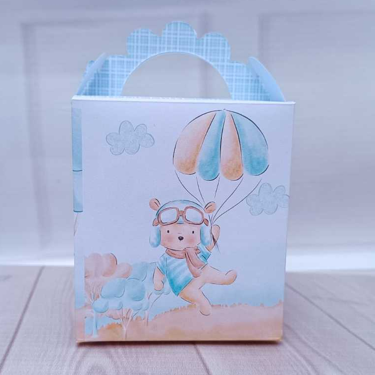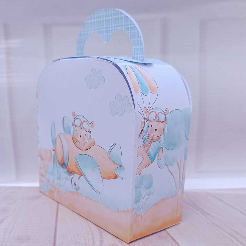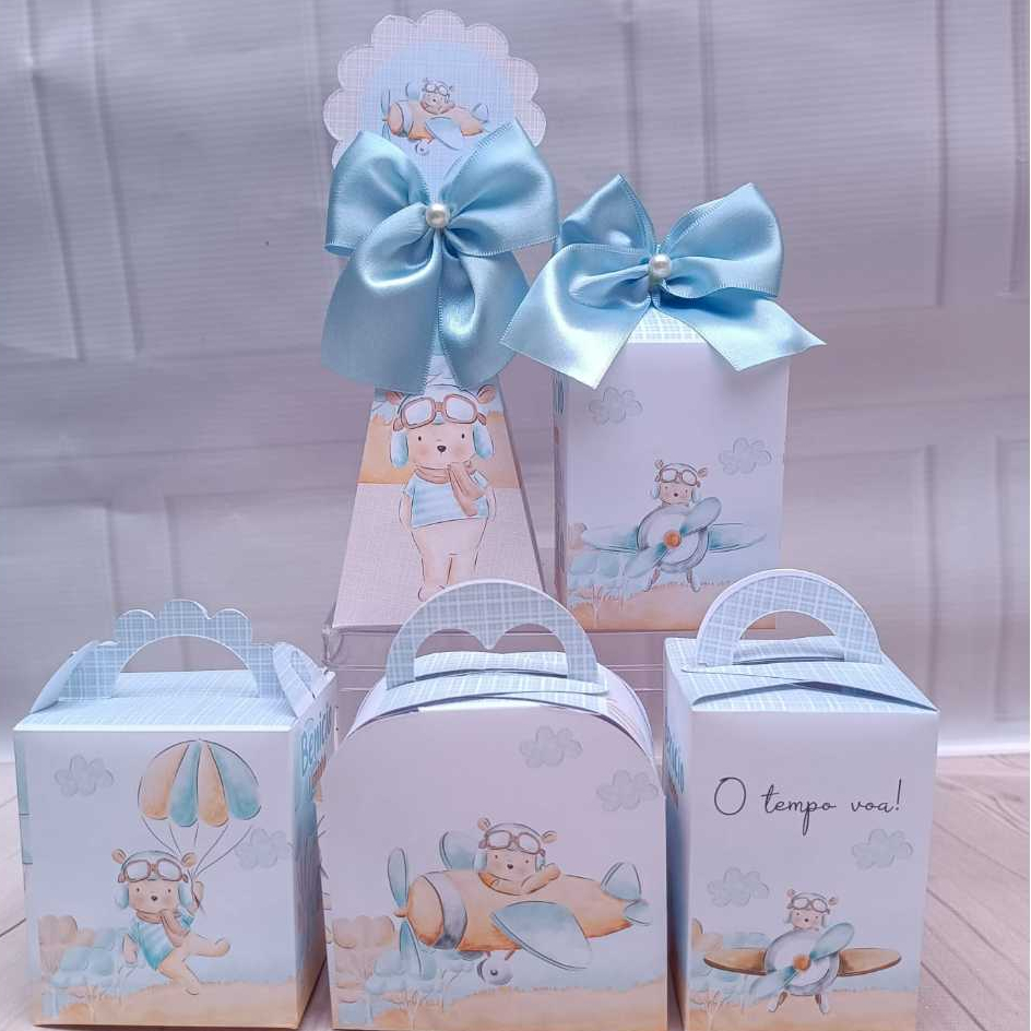 caixinhas Personalizadas Ursinho Voador - Aviador - o tempo voa Lembrancinha para Festa - PEGUE E MONTE