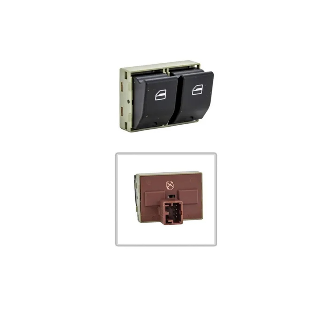 Par Botão Vidro Elétrico Gol G4 Fox Duplo E Simples 1 click, 1 estágio Fundo Marrom - VW0171 / VW0170