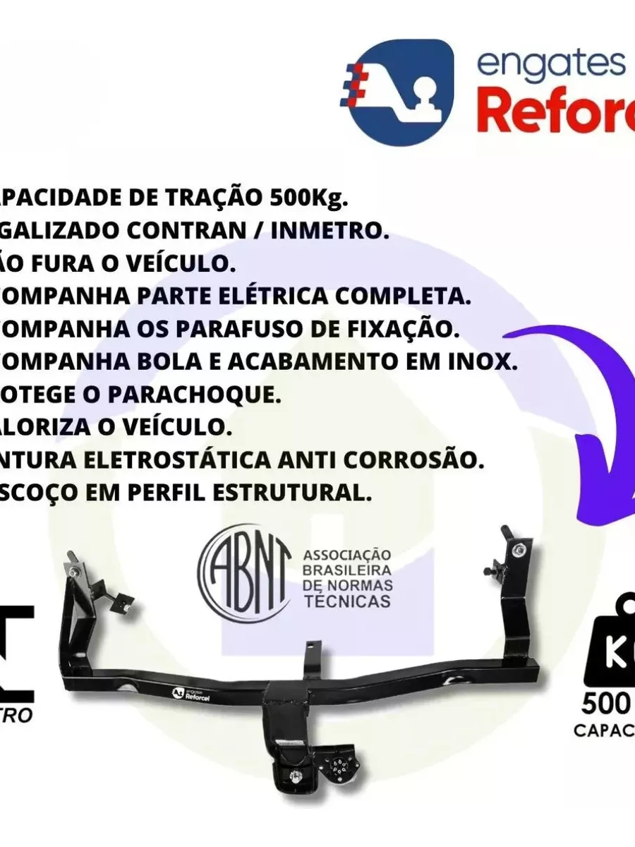 Engate Reboque Fixo Reforçado Fastback 2022 a 2026 500kg - REFT4060