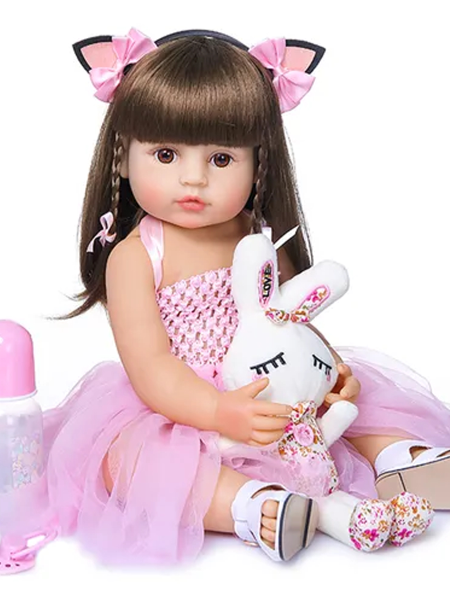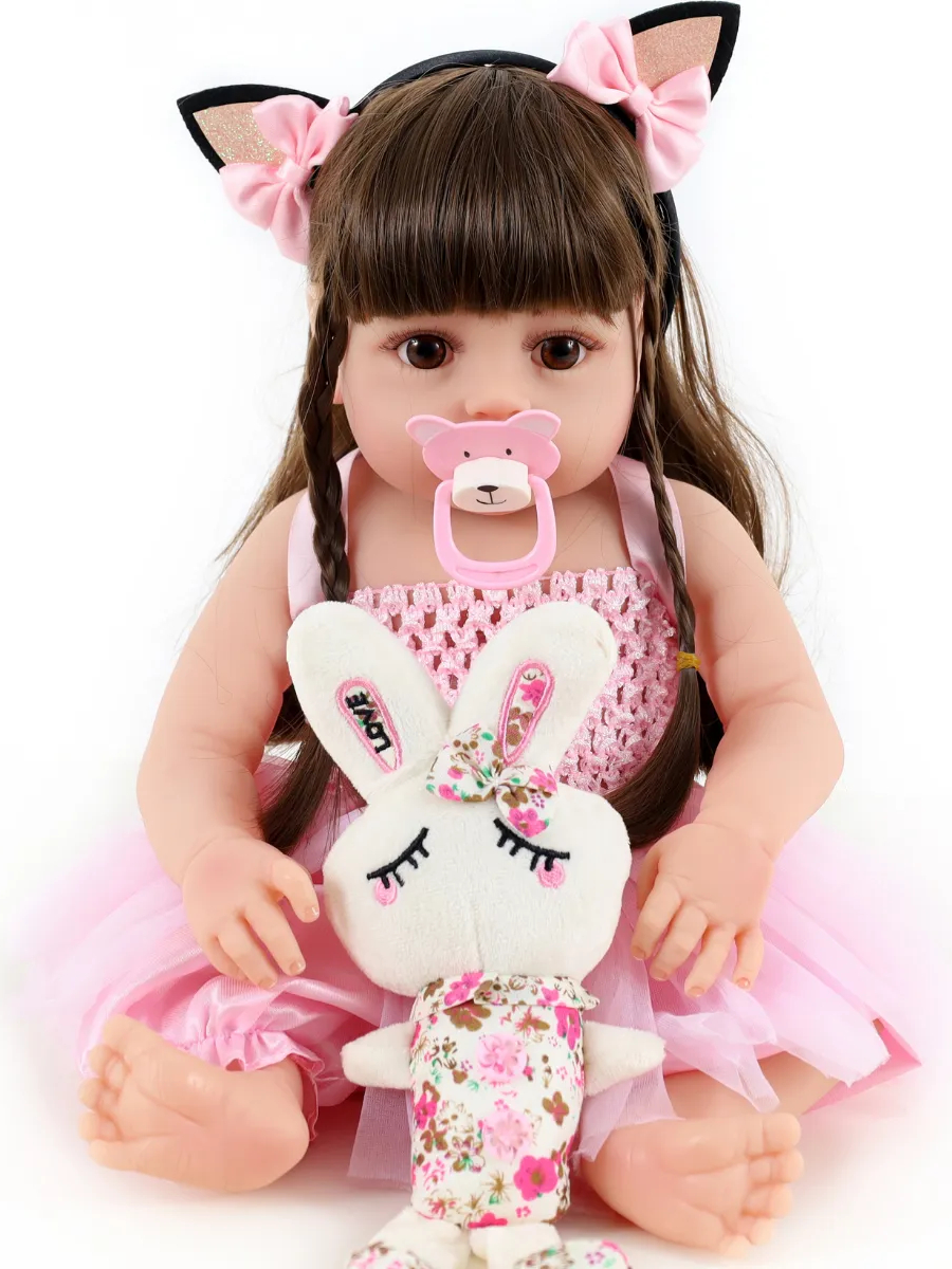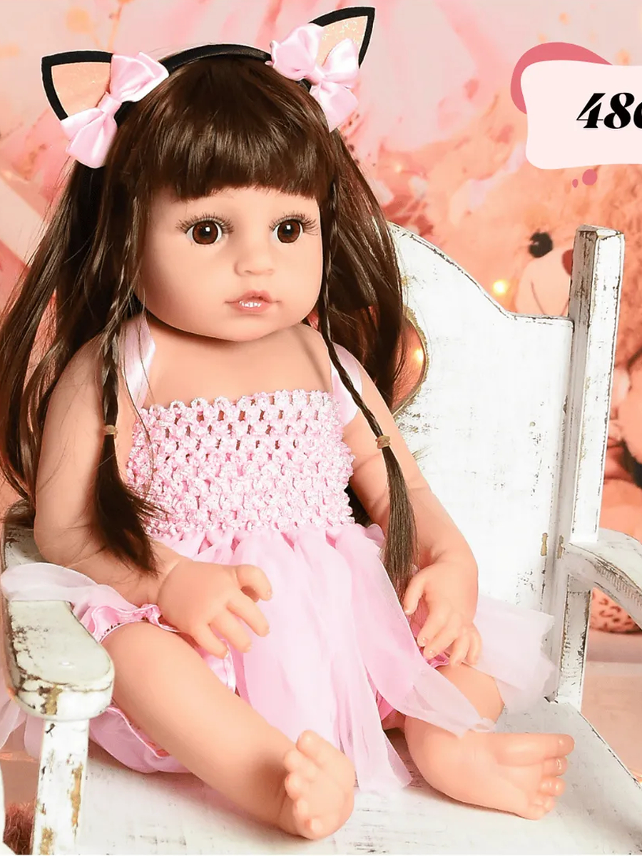 Menina Rosa Boneca Bebê Reborn Realista 48 cms Silicone