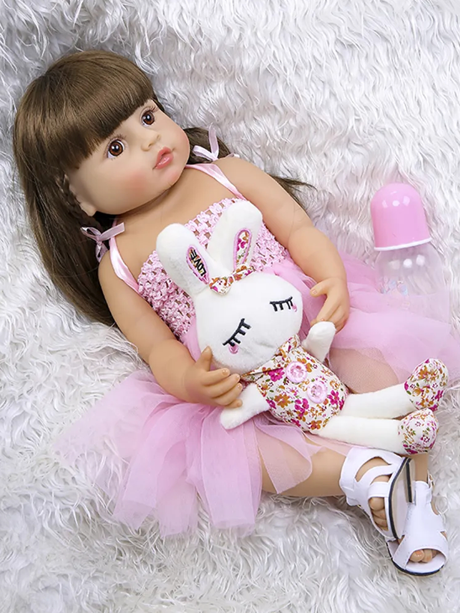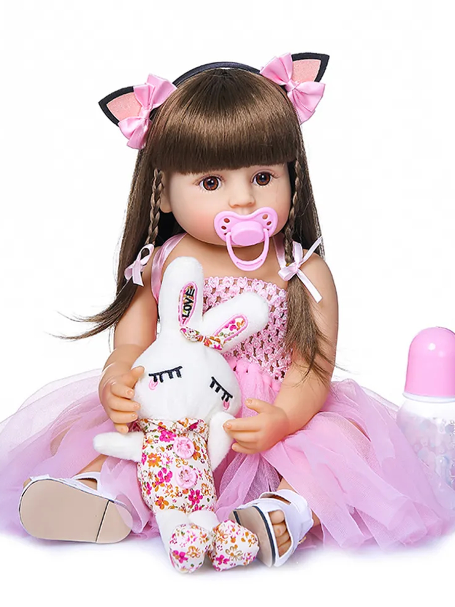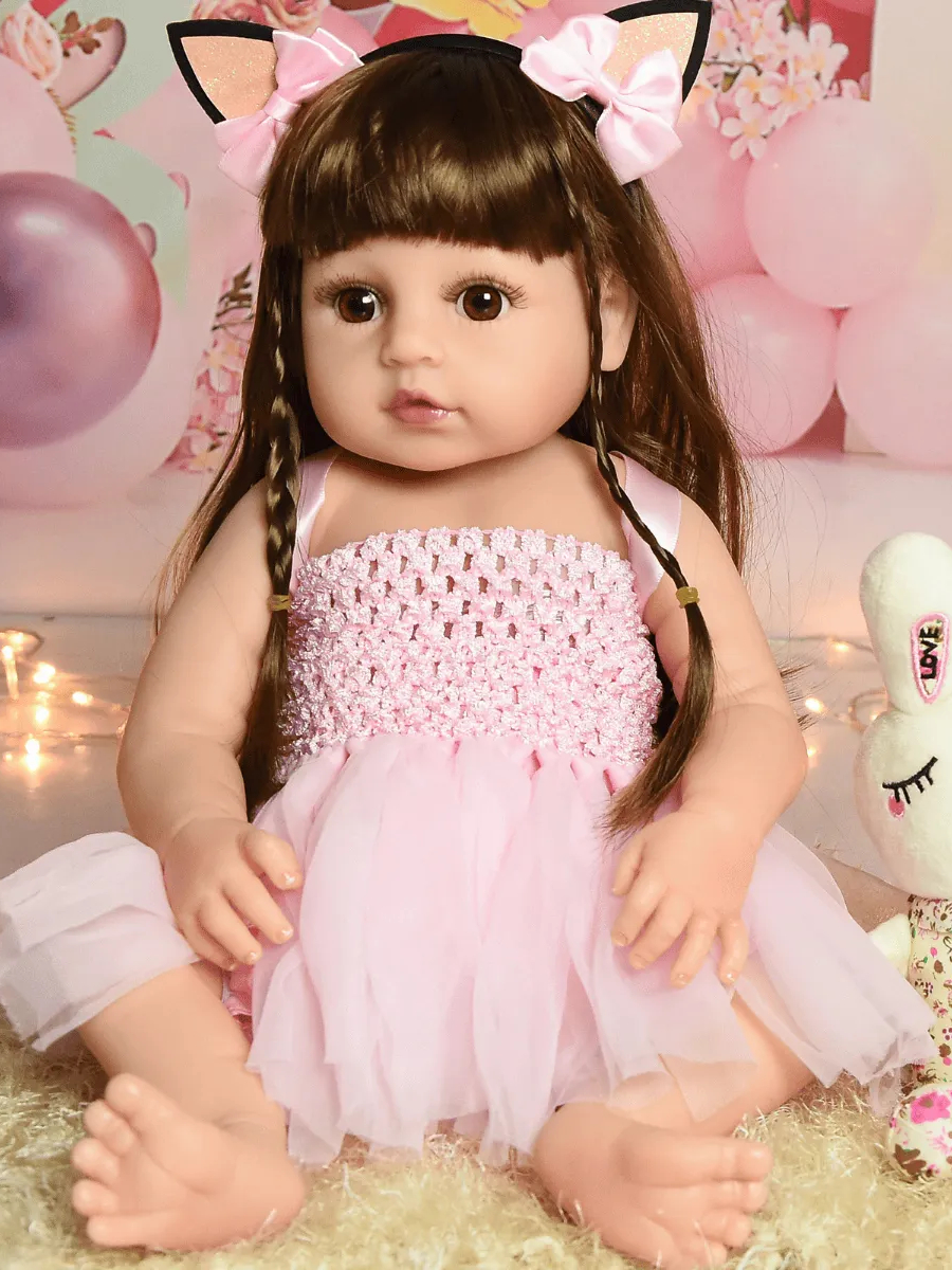 Menina Rosa Boneca Bebê Reborn Realista 48 cms Silicone