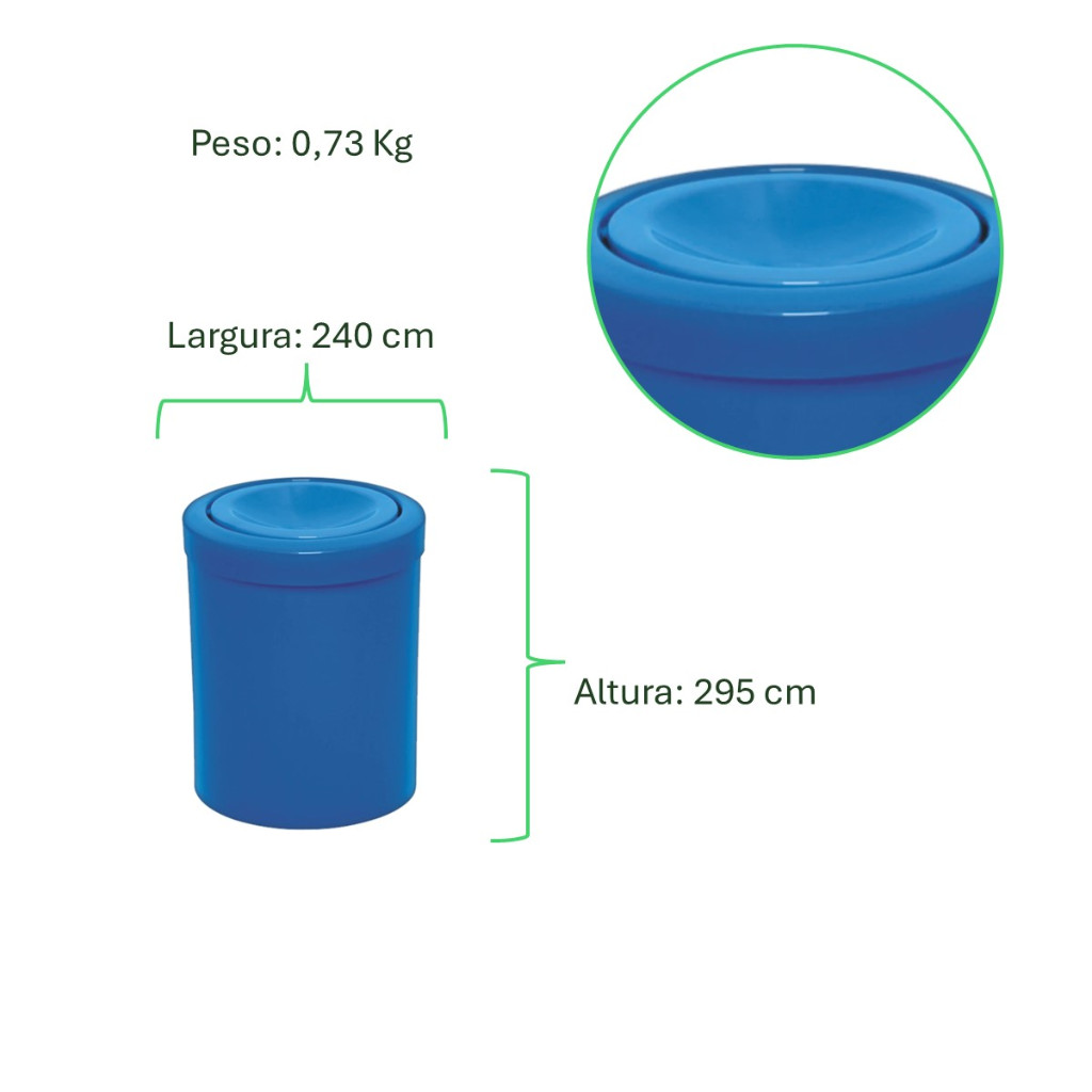 Lixeira Cesto plástica 12L com tampa meia esfera.