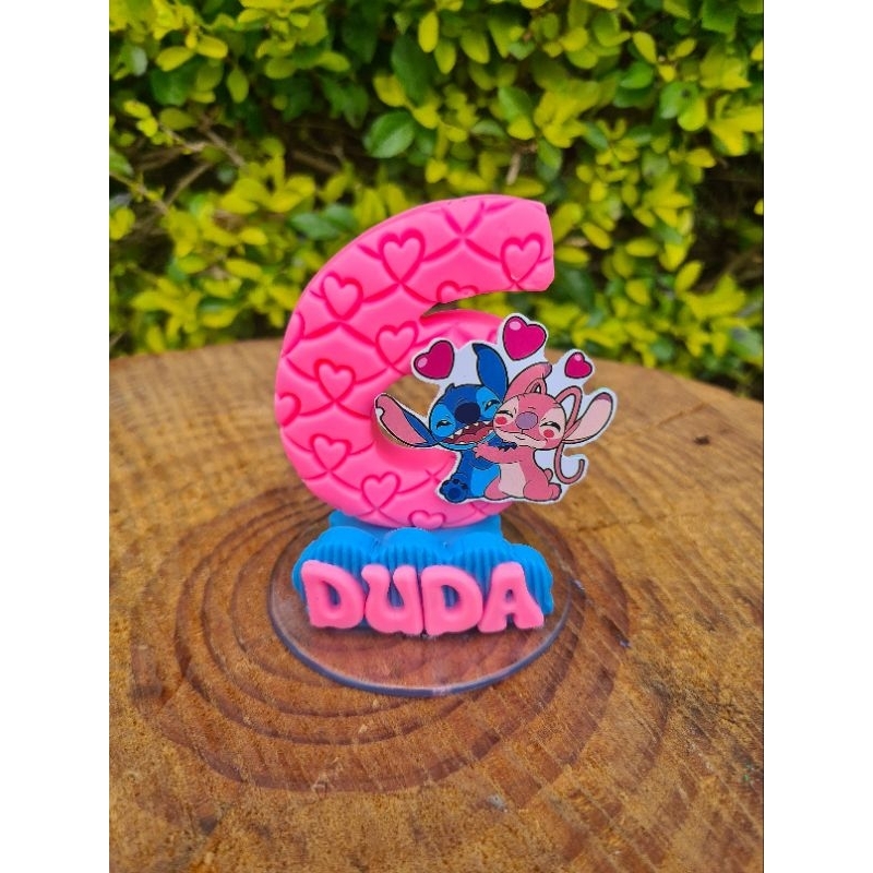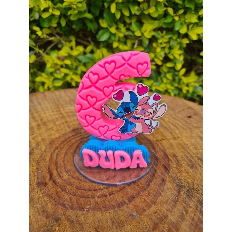 vela de aniversário Stitch e angel, personalizada, biscuit, topo de bolo com nome e pavio