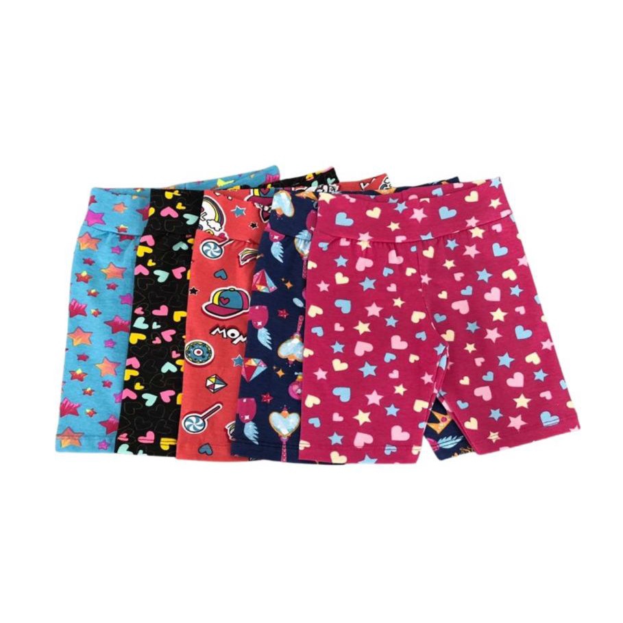 Kit 5 shorts leg 1 ao 14 anos bermuda legging para crianças infantil cores sortidas em cotton