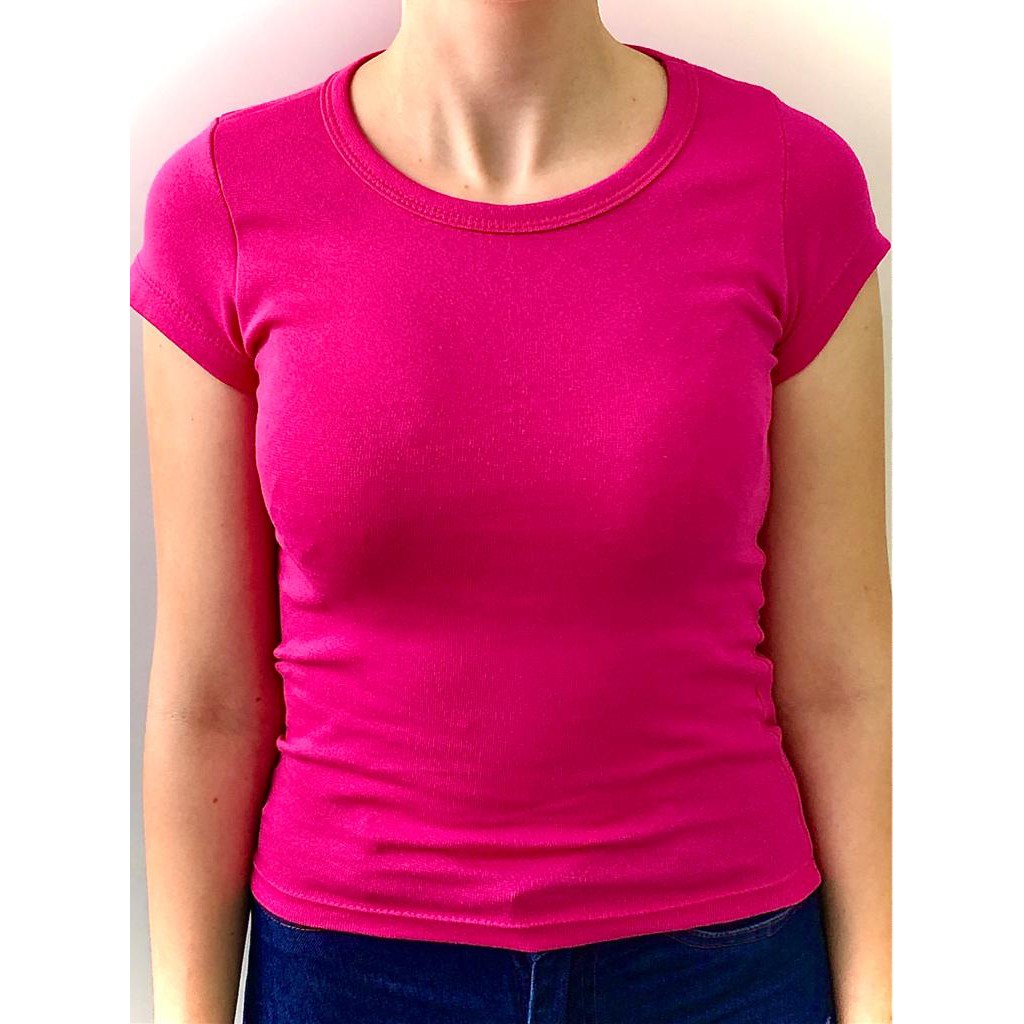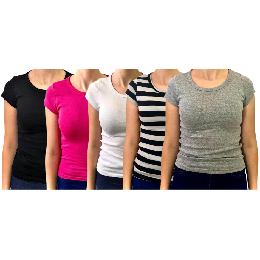 Kit 5 blusas baby look coloridas 96% algodão 4% elastano.