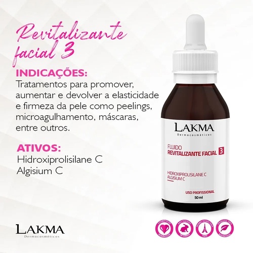 Lakma Fluido Revitalizante Facial 3 50ml - Estimulante de Colágeno e Elastina