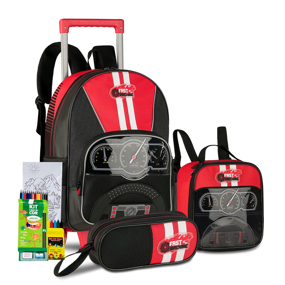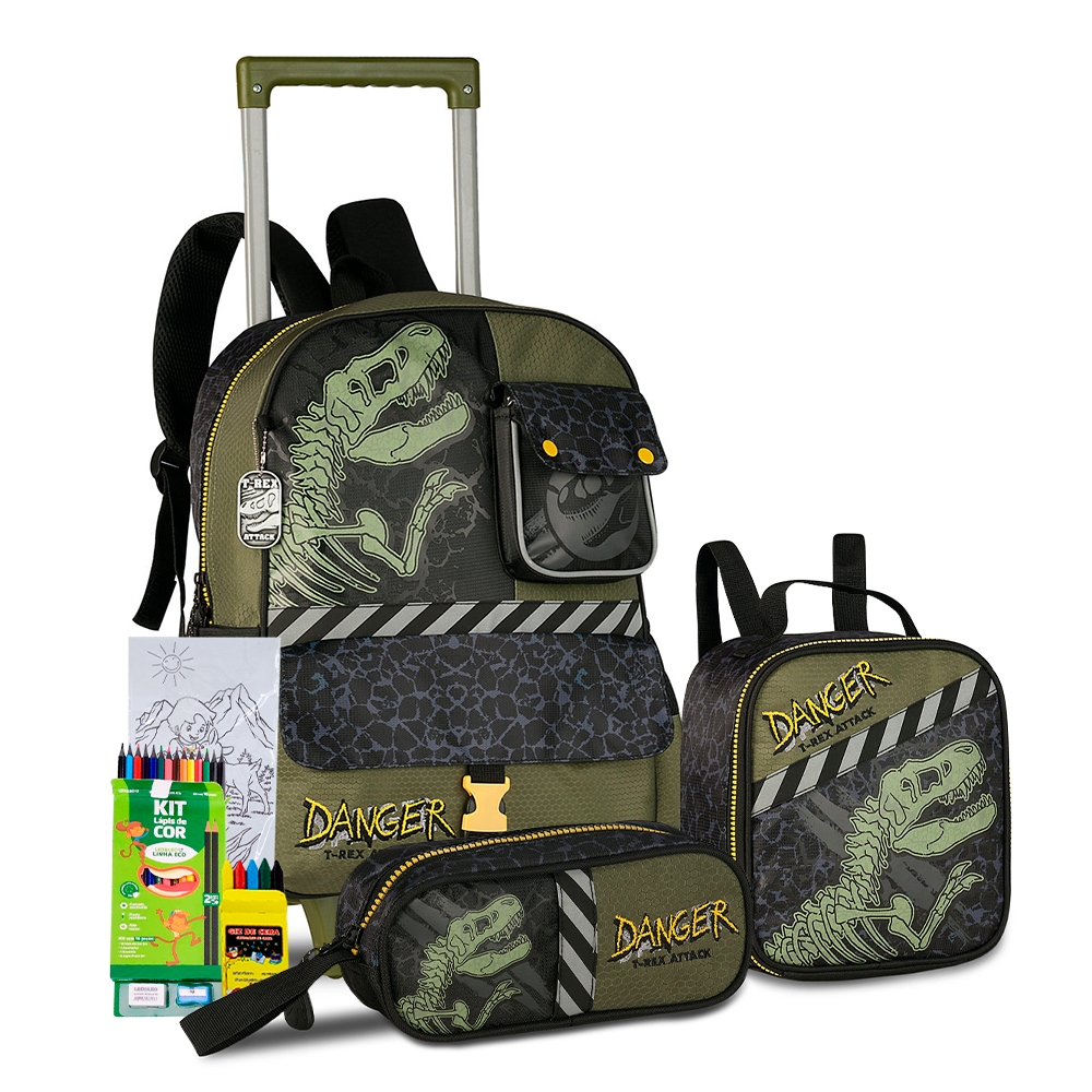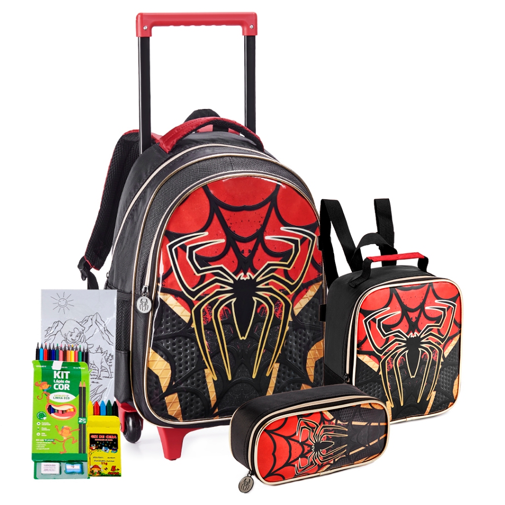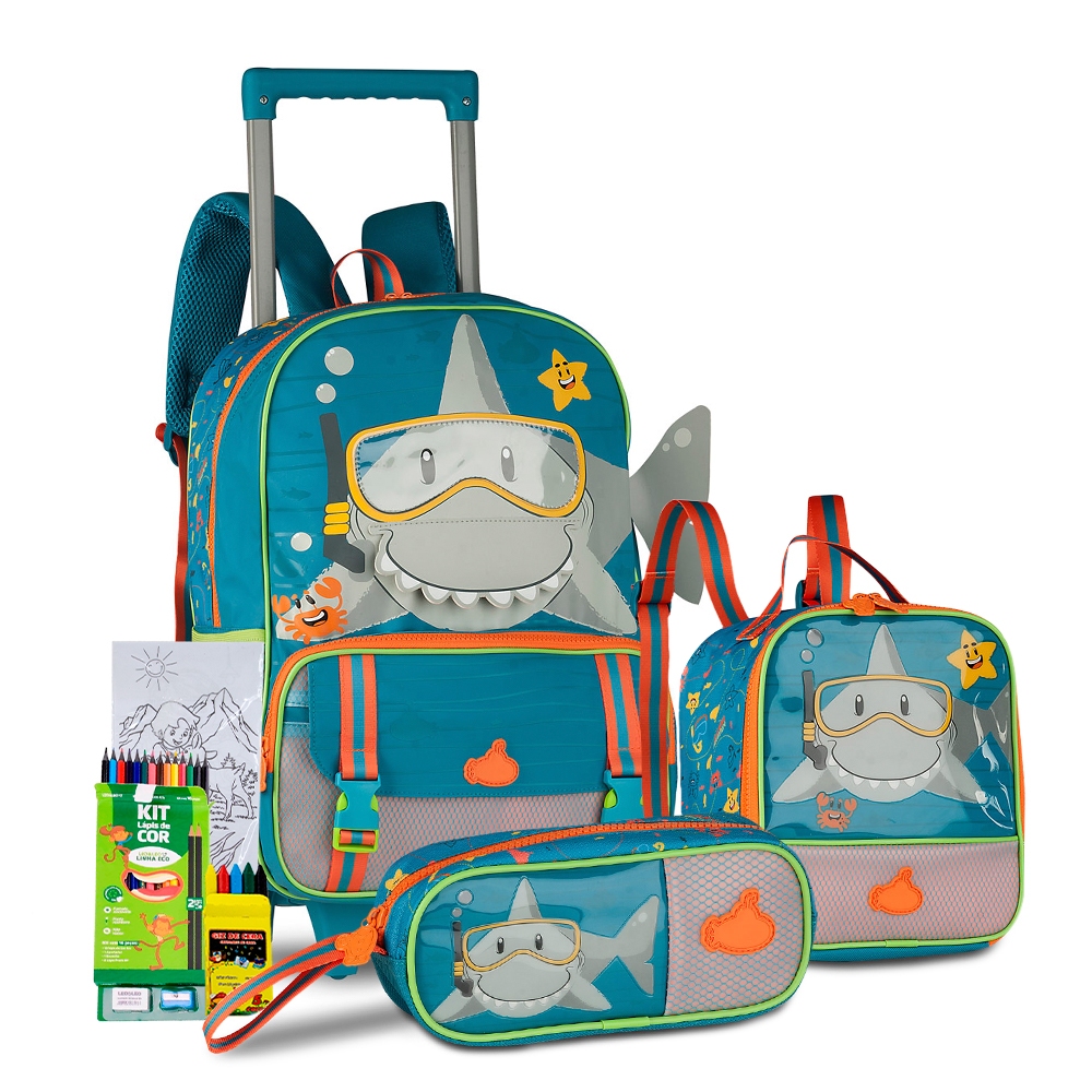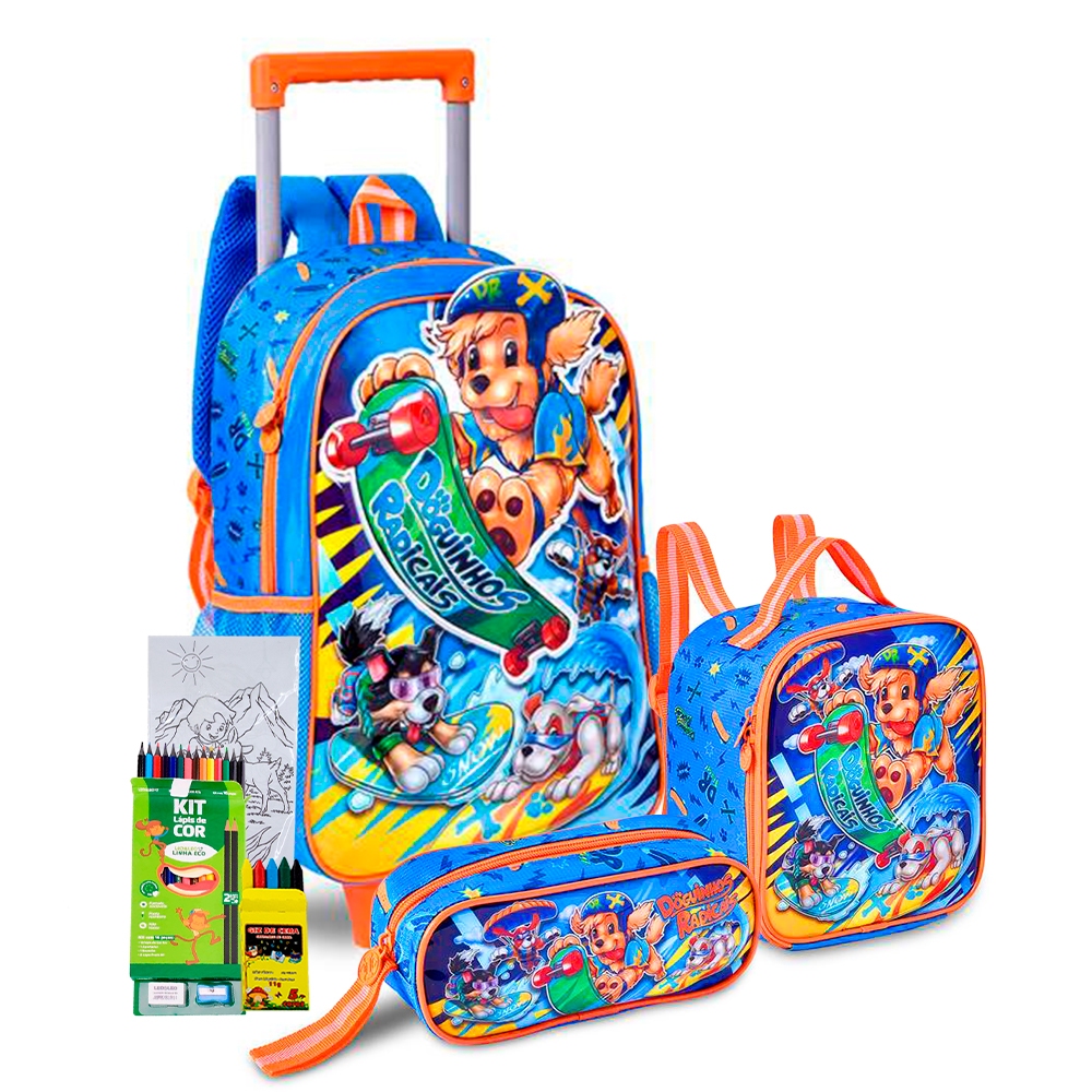 Kit Mochila Rodinha Estojo Lancheira Meninos Denlex Lancamento Reforcada Passeio Creche Personagem