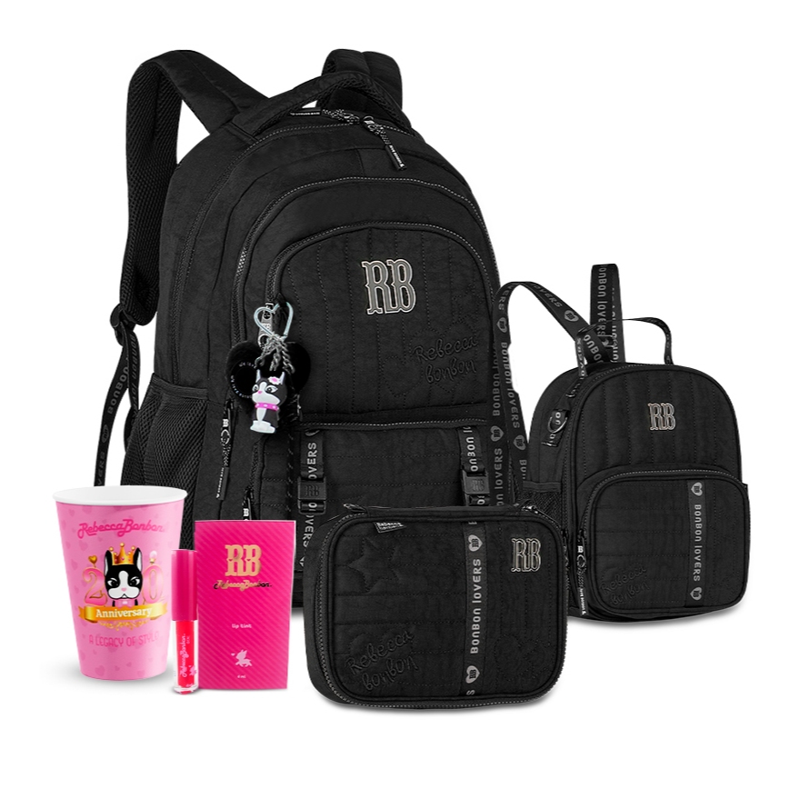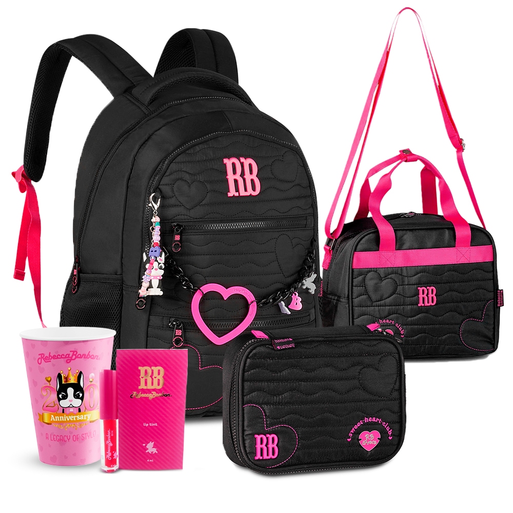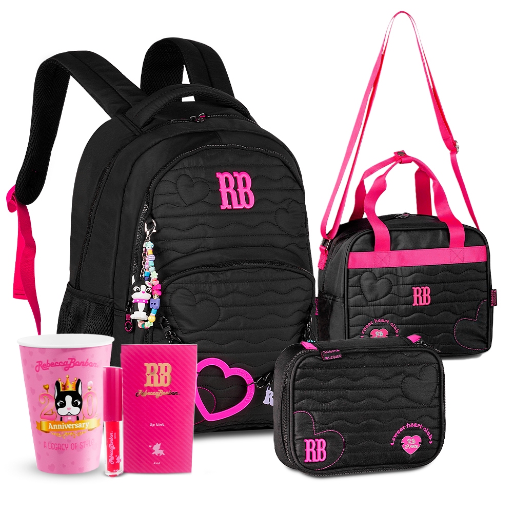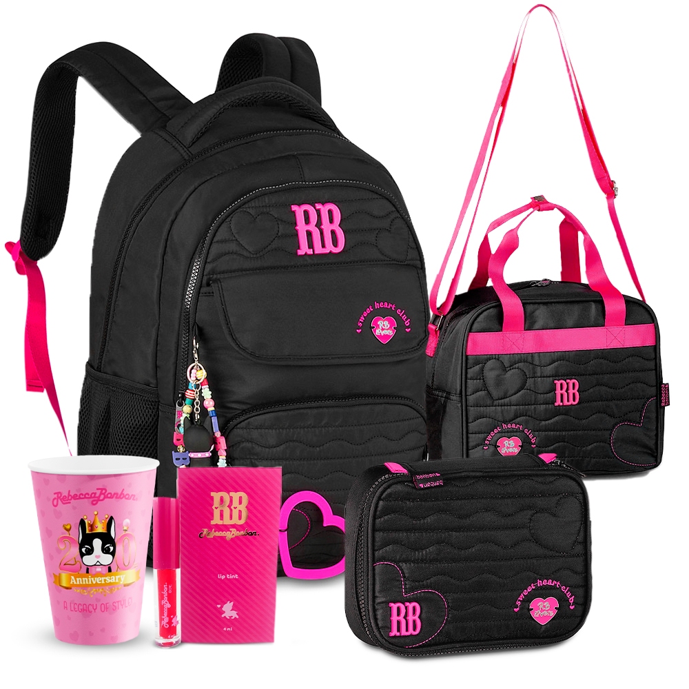 Kit Mochila Rebecca Bonbon Estojo Box Escolar Universitário Lancheira Térmica Alças Meninas Jovens