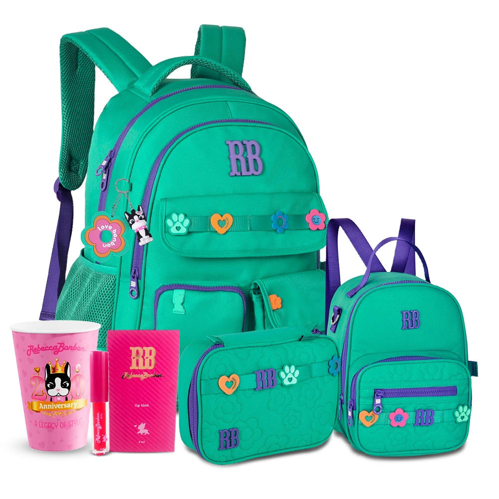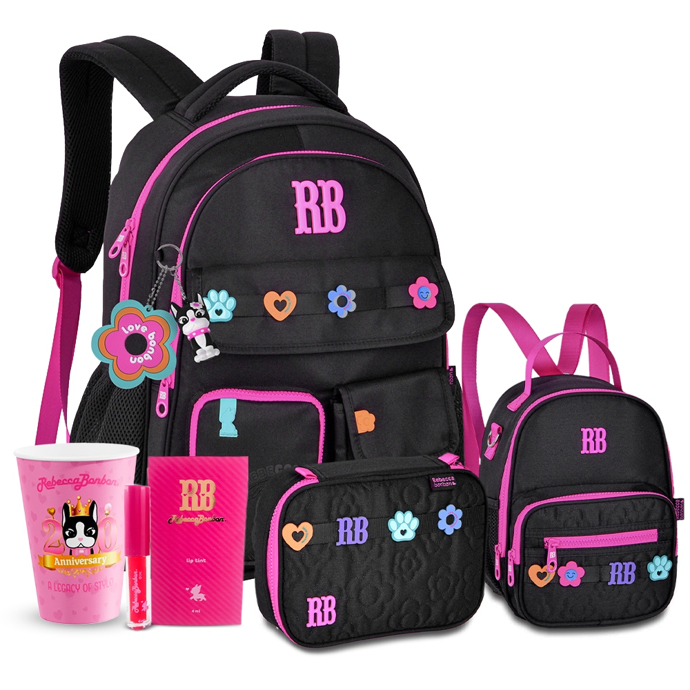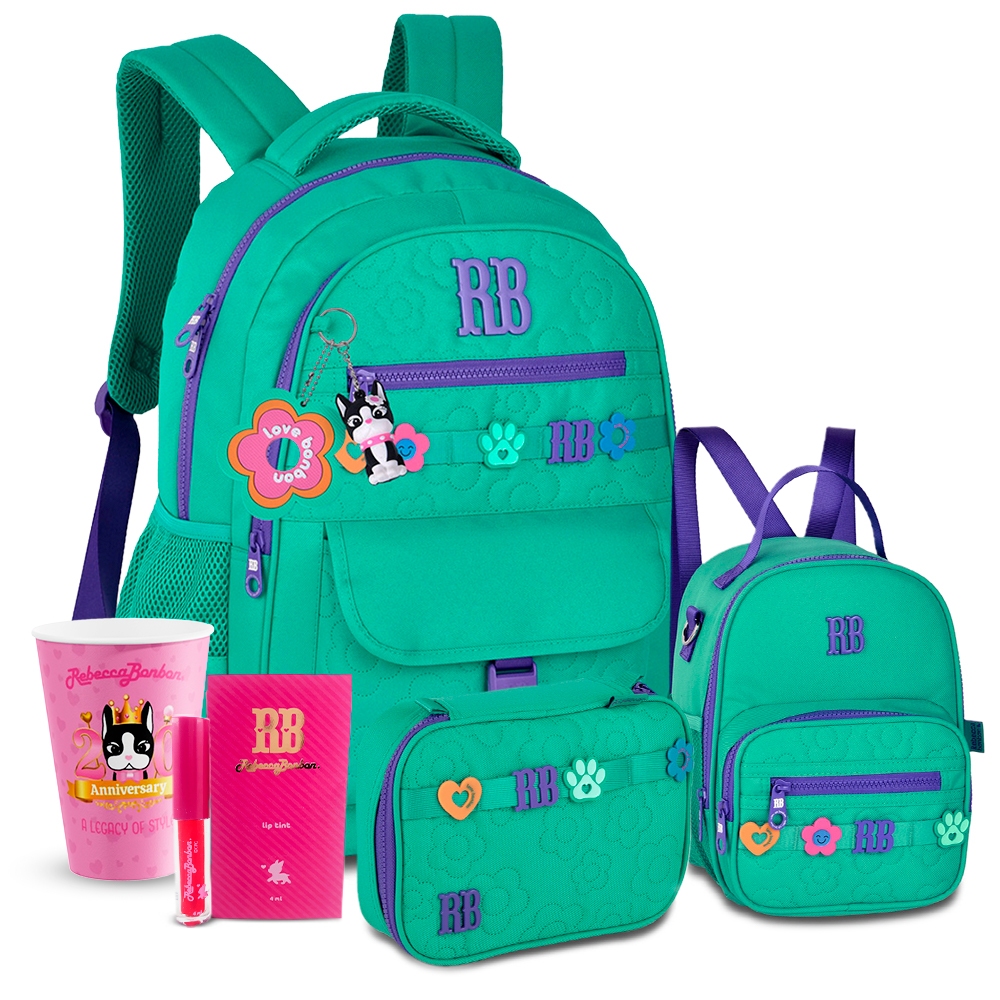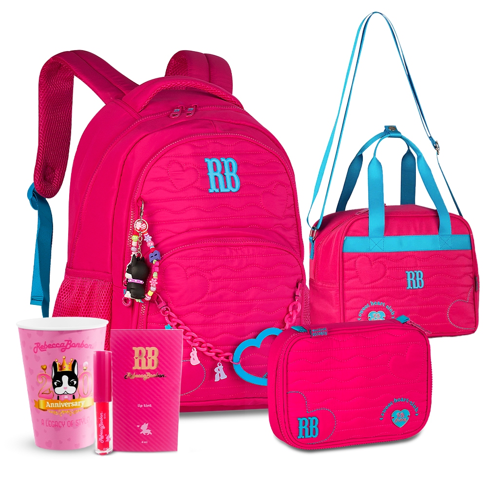 Kit Mochila Rebecca Bonbon Estojo Box Escolar Universitário Lancheira Térmica Alças Meninas Jovens