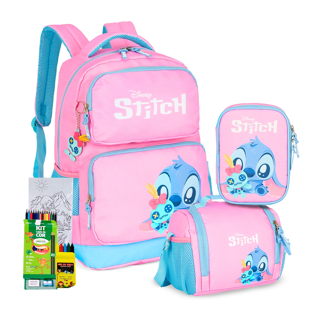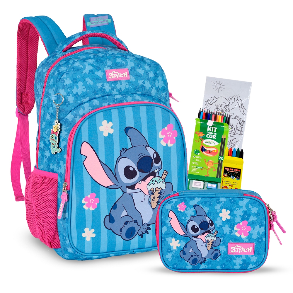 Kit Mochila Stitch Estojo Box Lancheira Térmica Escolar Volta as Aulas 2026