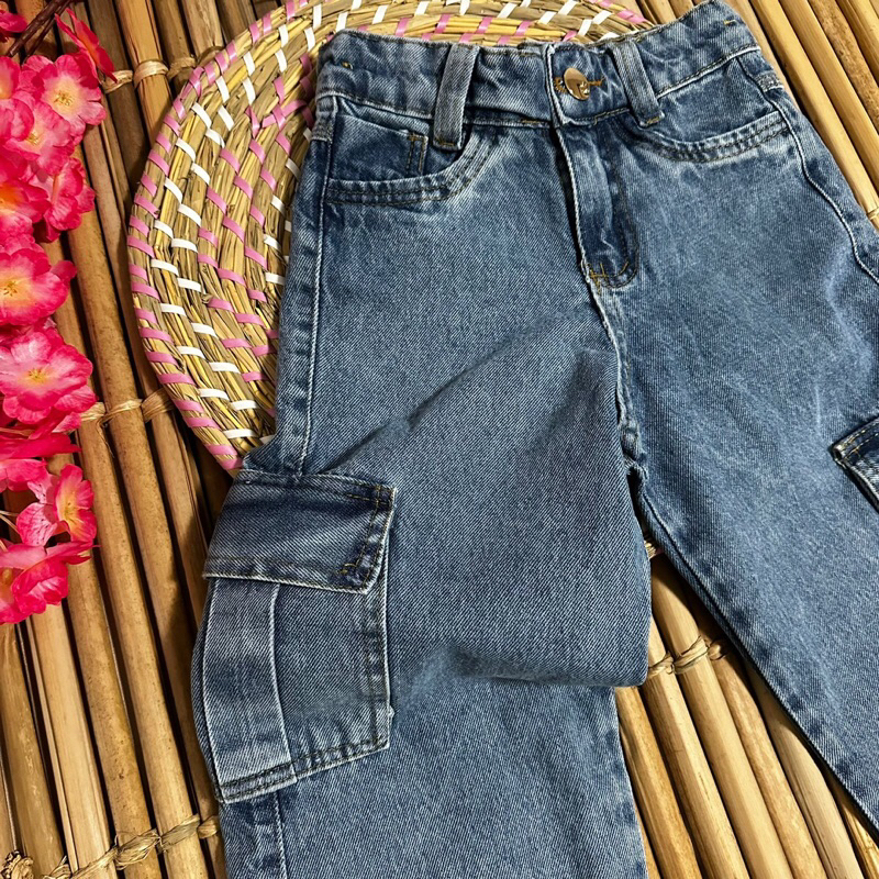 CALÇA MENINAS INFANTIL JEANS MODELO WIND LAG/CARGO/MODA/KIDS/MENINAS