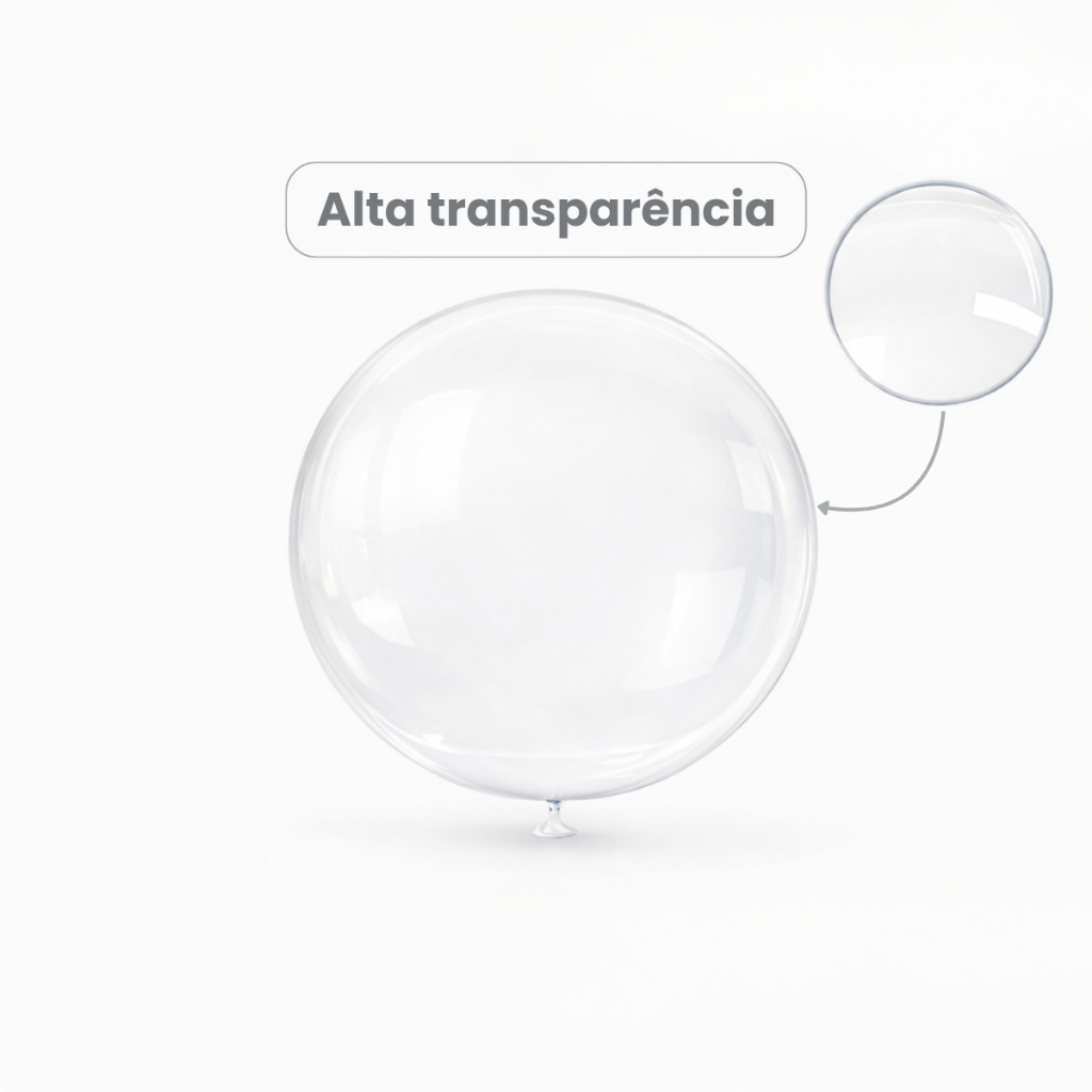 Kit 50 Balões Bubble 24'' 60cm Transparente Premium Balão Bolha Cristal Festa Aniversário Decoração