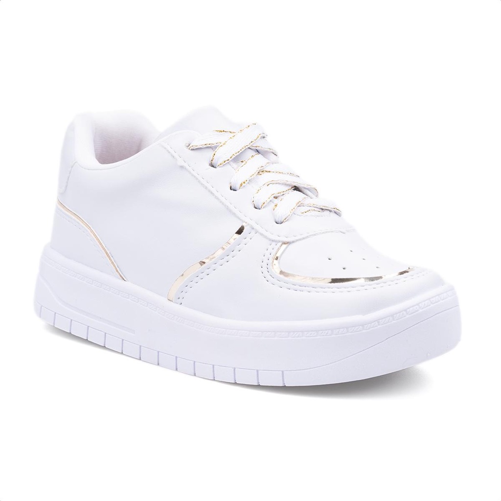 Tênis Infantil Menina Fashion Com Friso Dourado Cano Baixo Casual