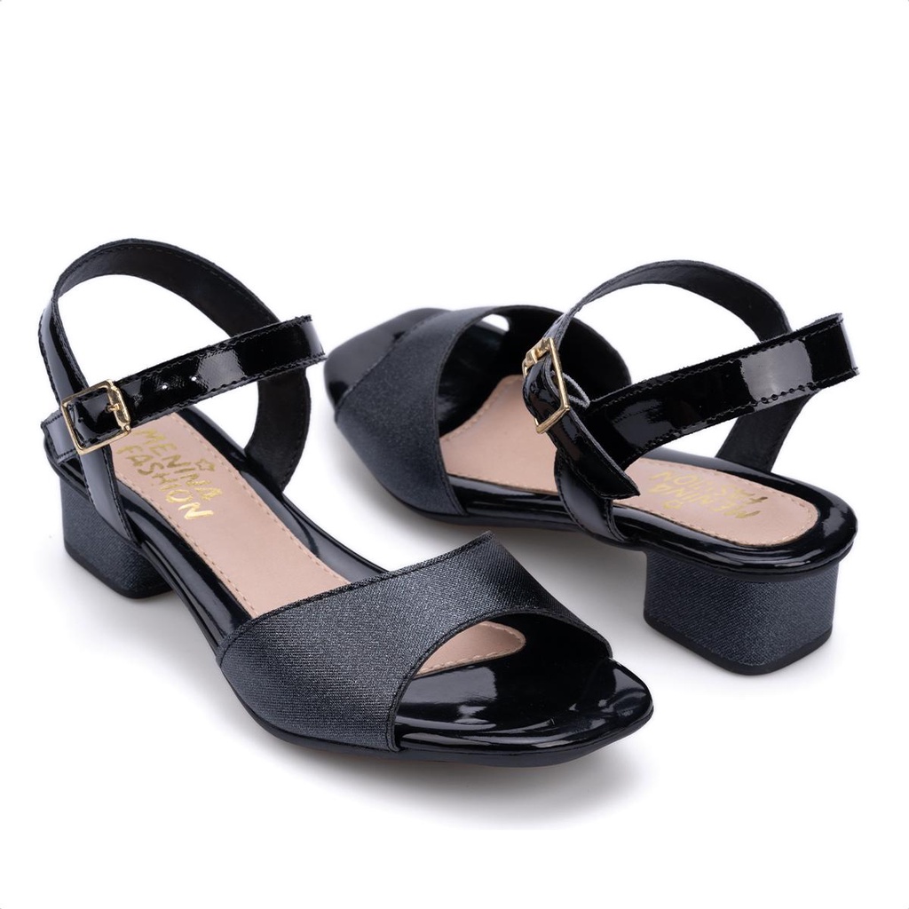 Sandália Infantil Menina Fashion Verniz Tira Brilhante Salto Bloco