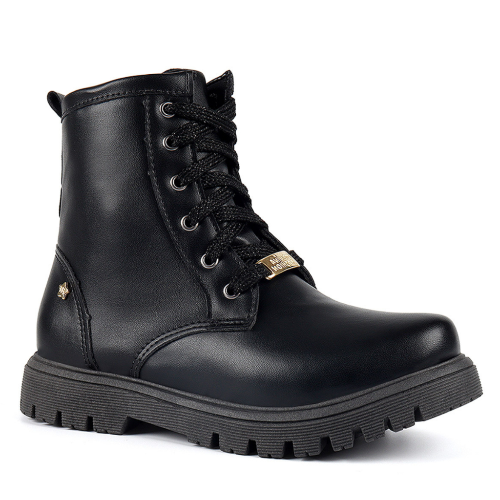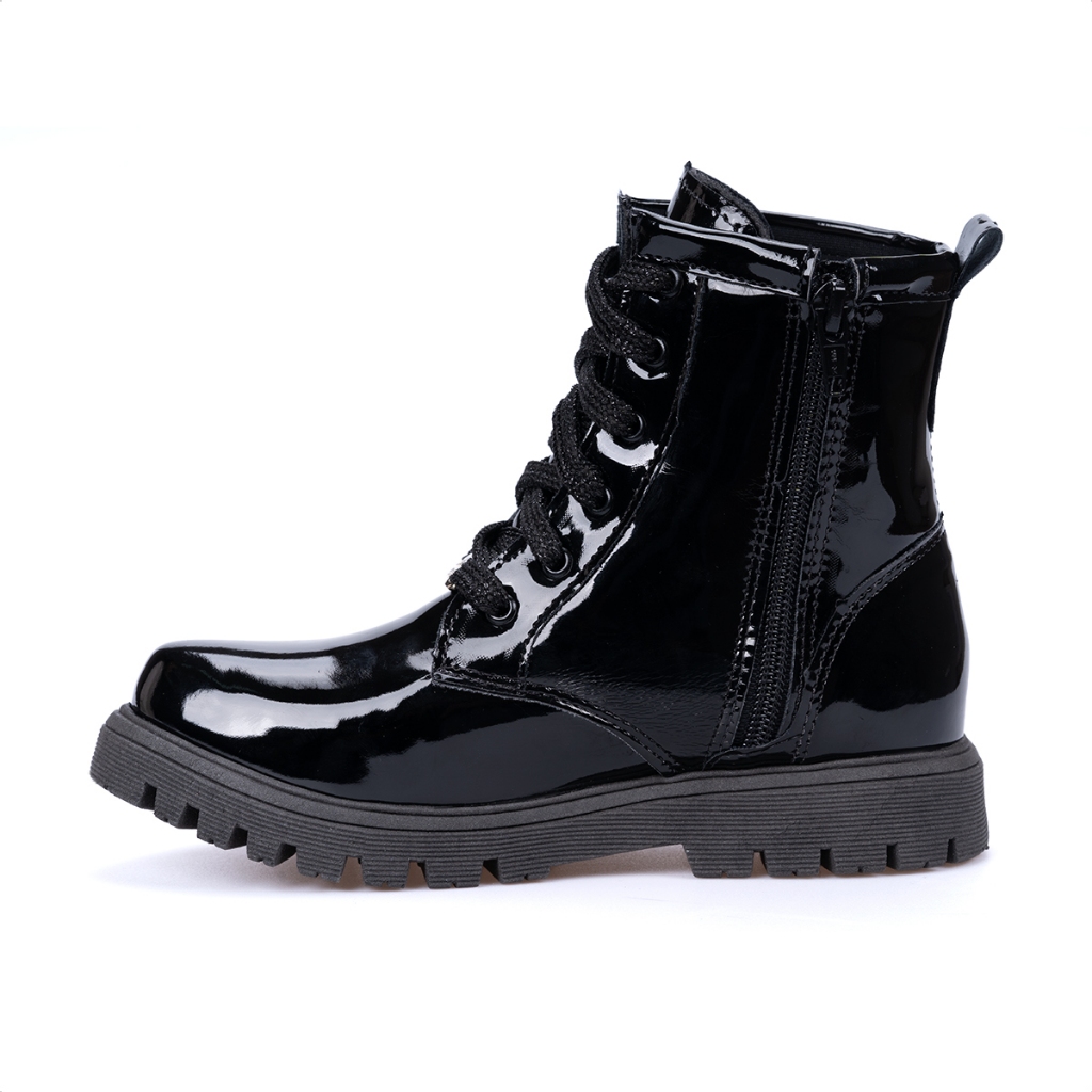 Coturno Infantil Menina Fashion Tratorado Cano Alto Cadarço Brilhante Zíper