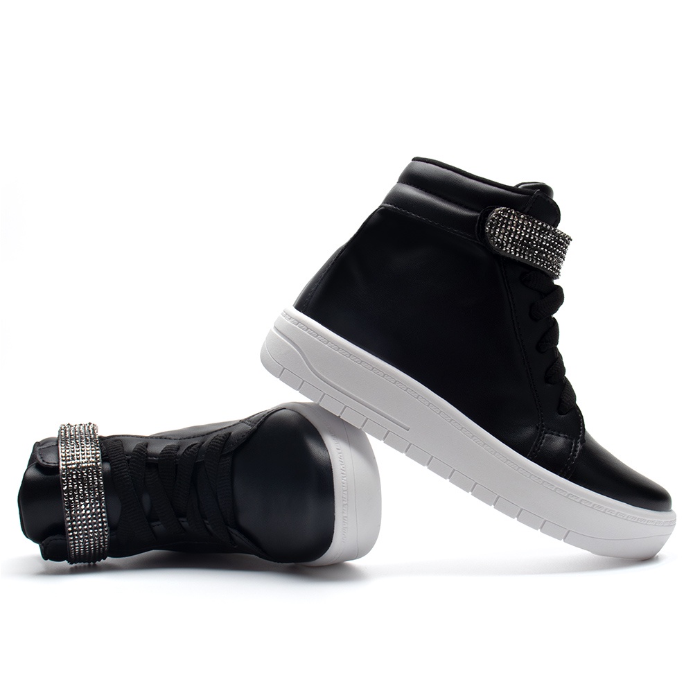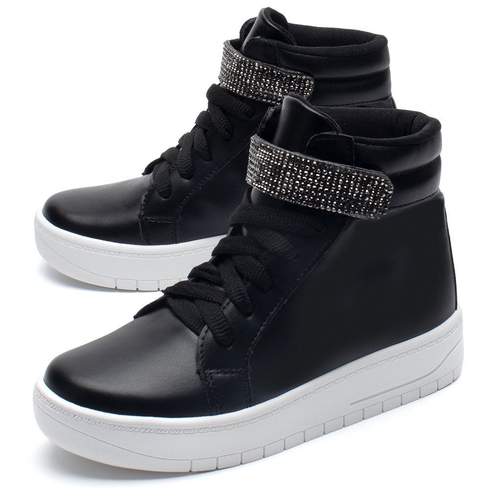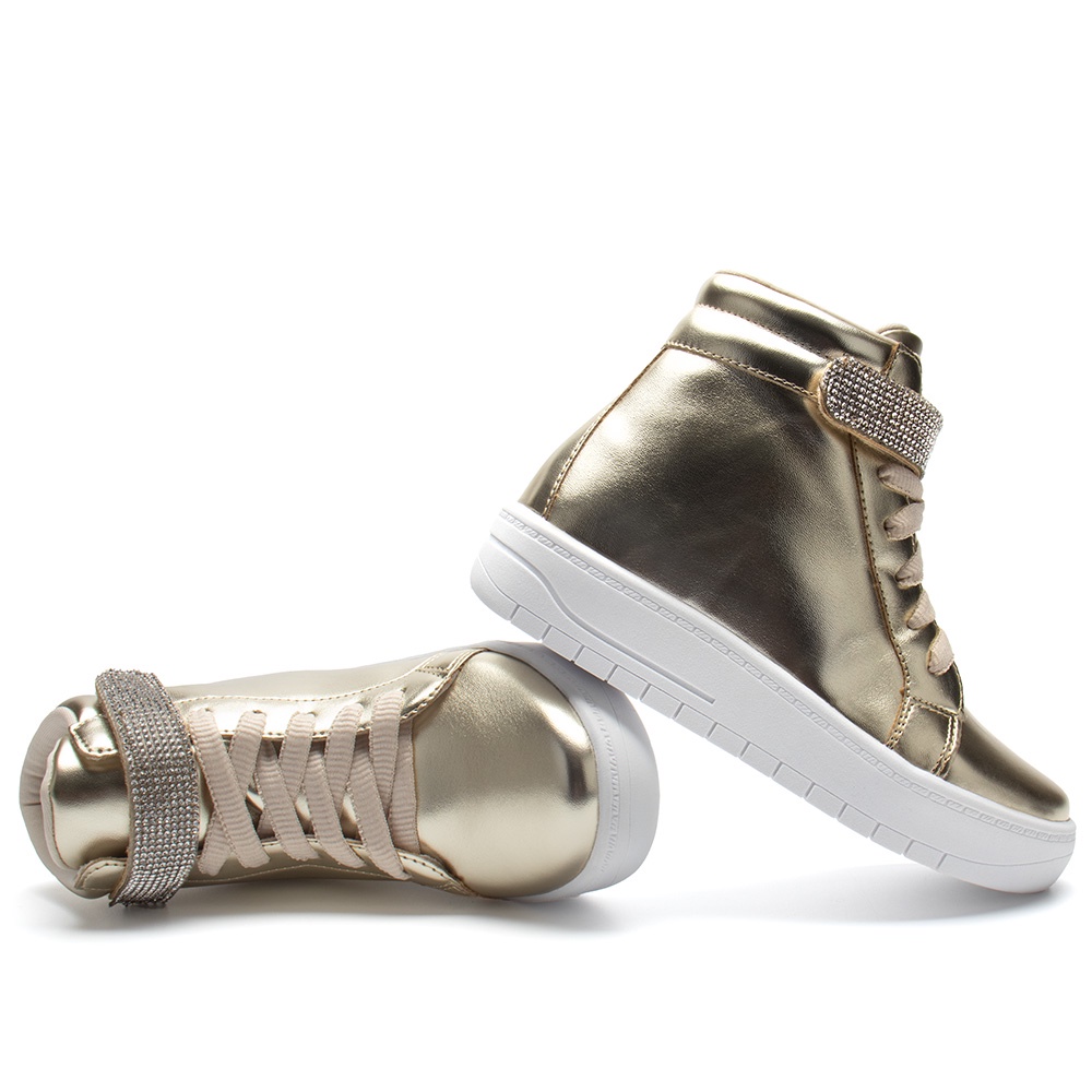 Tênis Infantil Menina Fashion Casual Cano Alto Tira Strass Moda