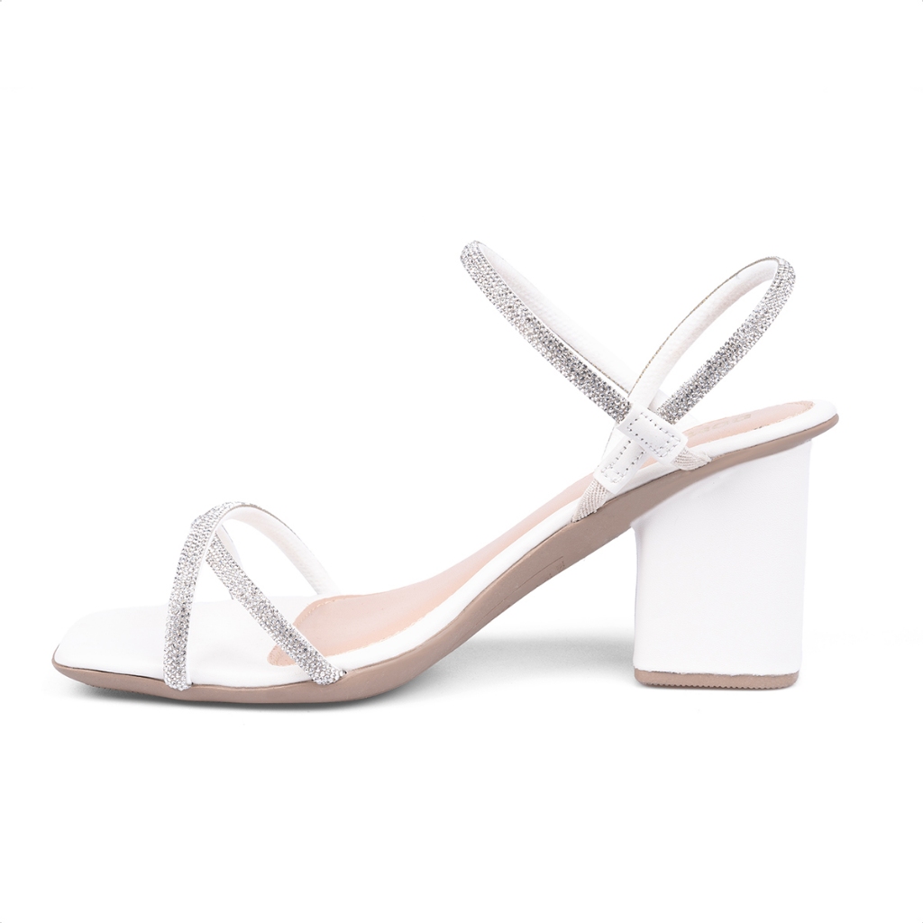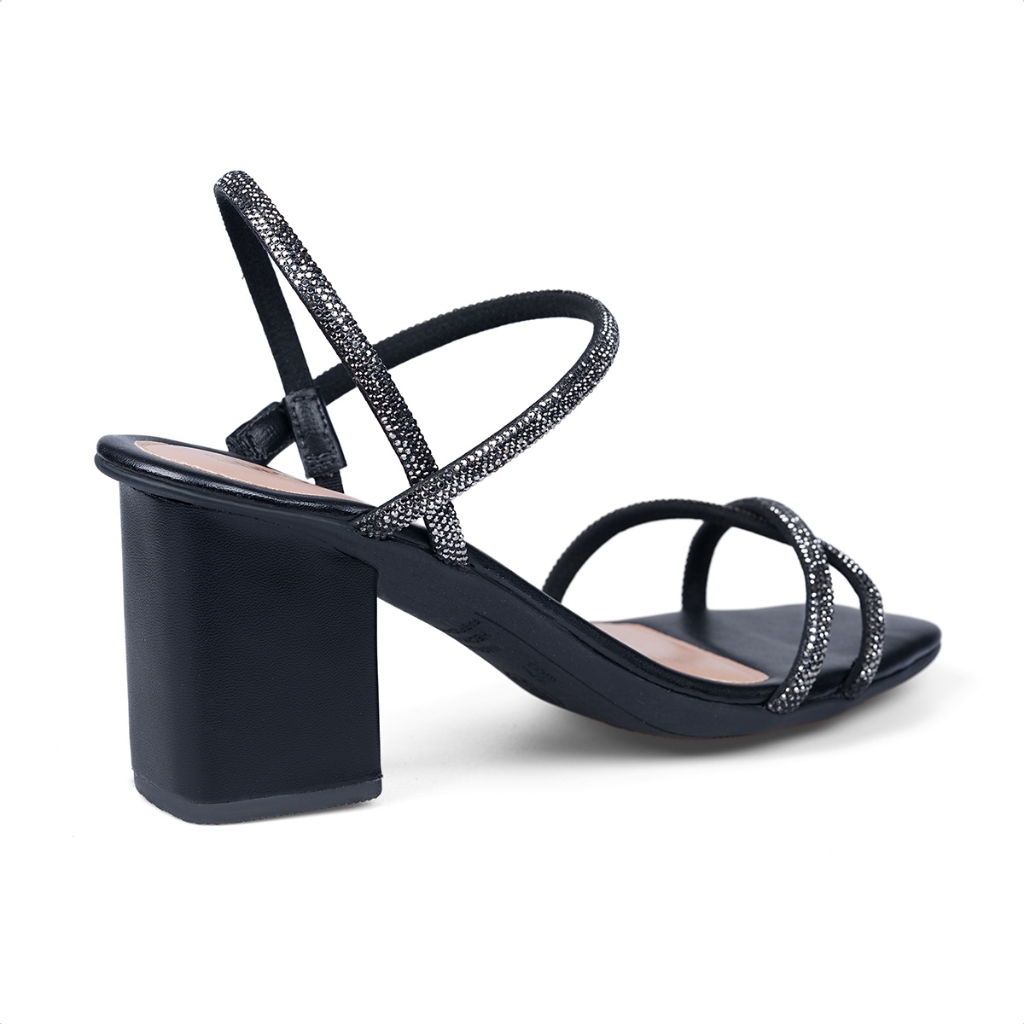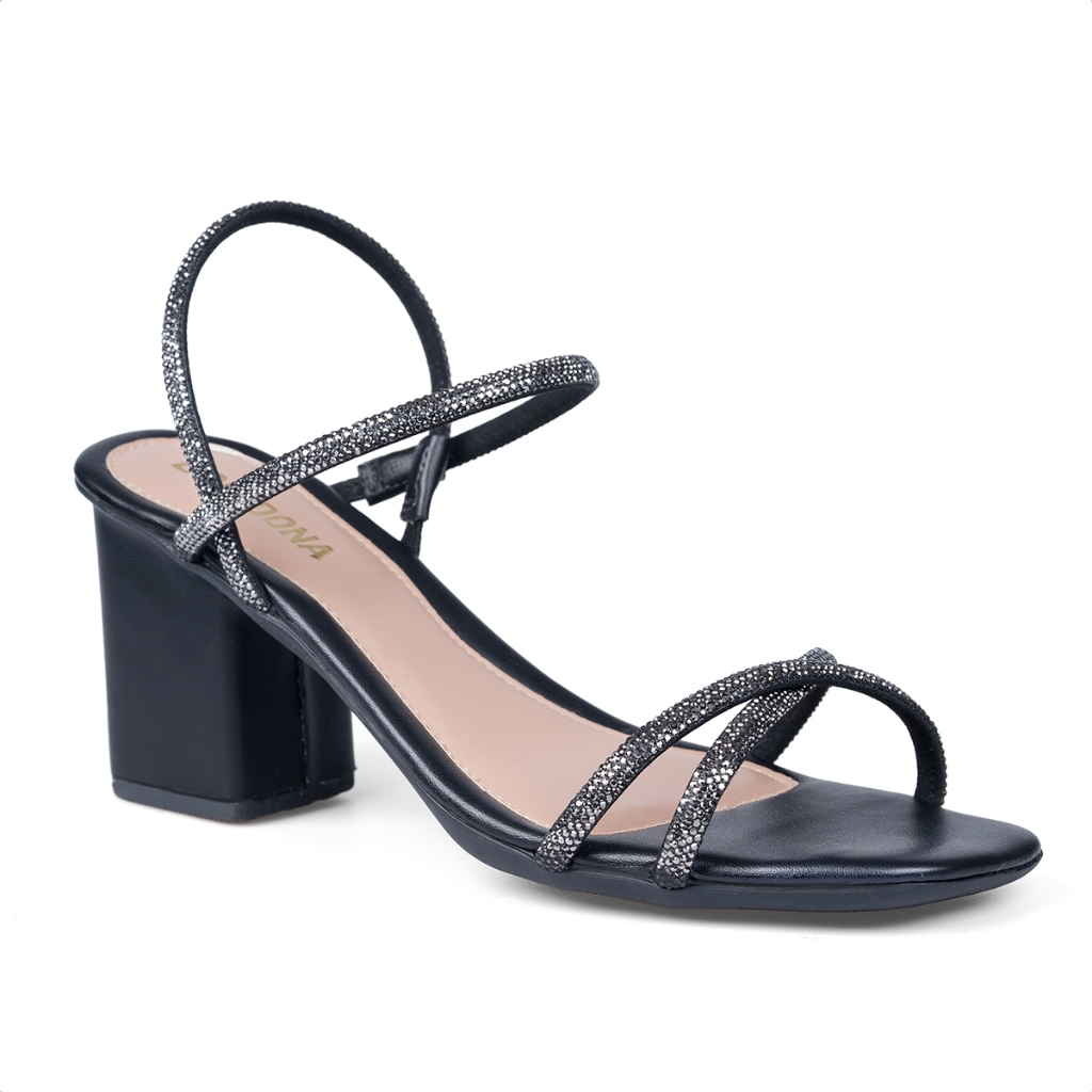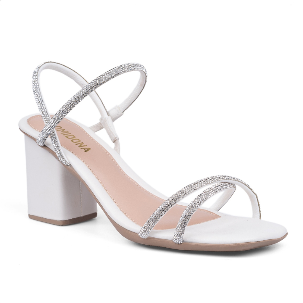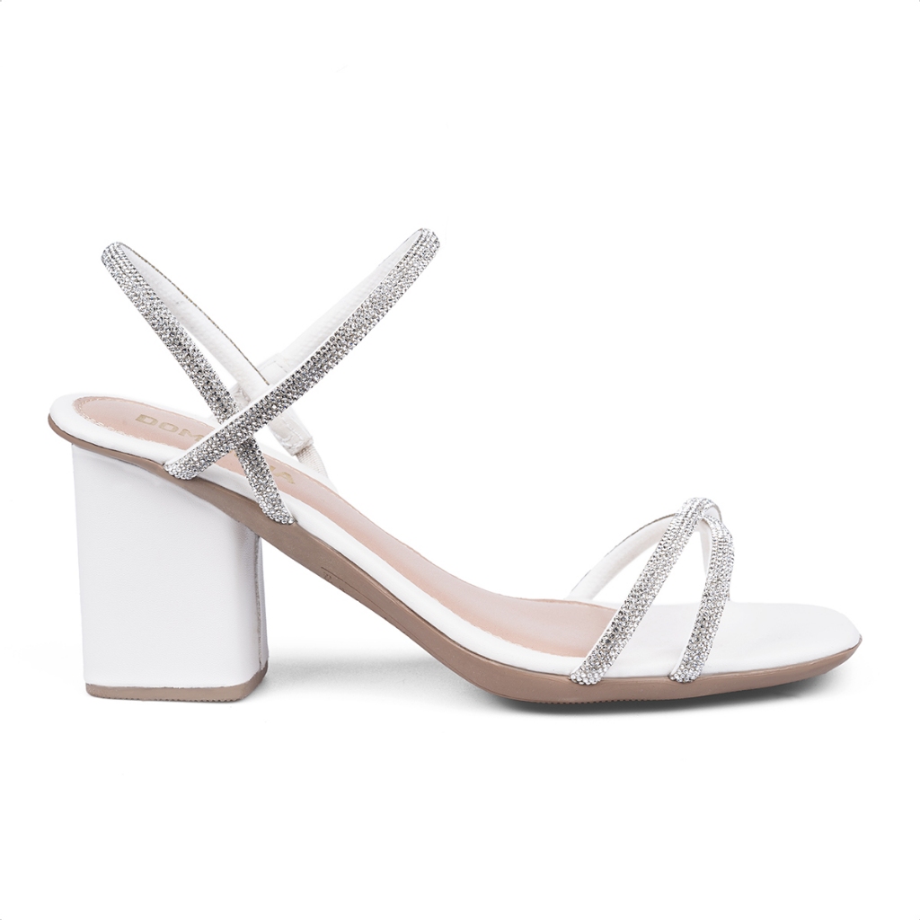 Sandália Feminina Domidona Salto Bloco Tiras de Strass Cruzadas