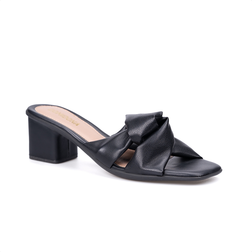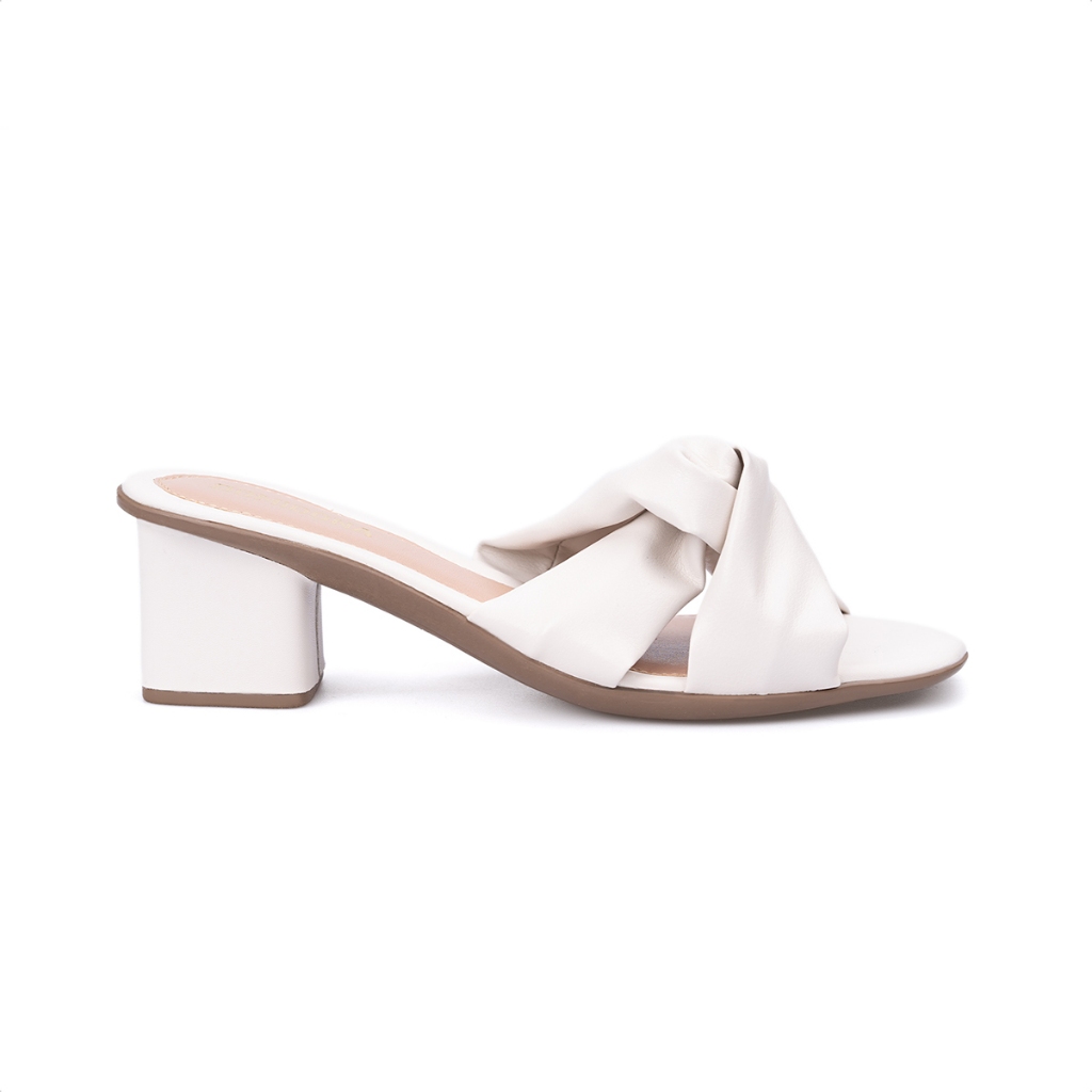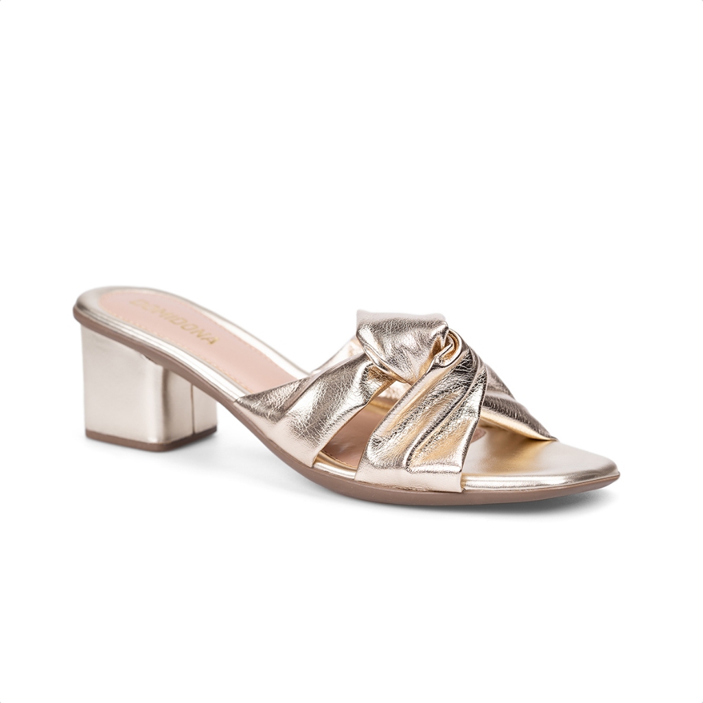 Sandália Feminina Tiras Nó Bico Quadrado Salto Médio Bloco