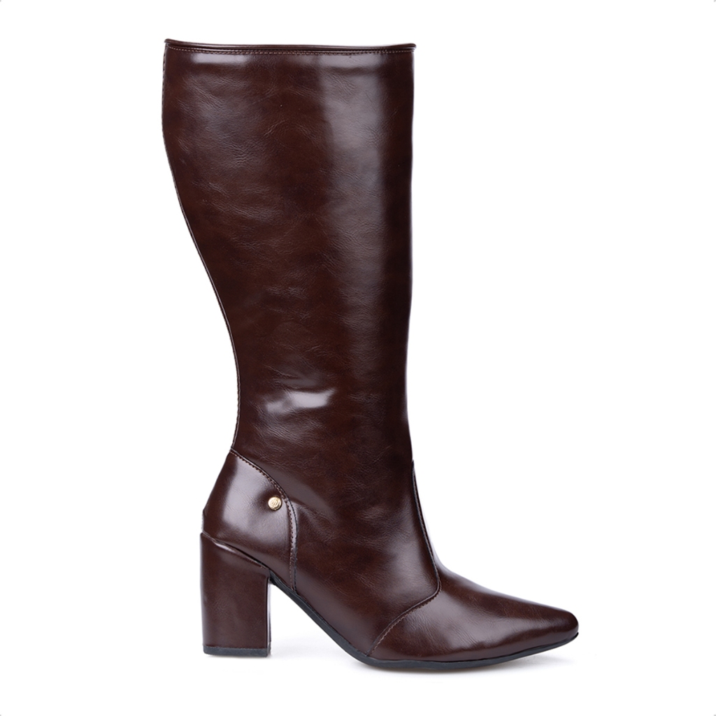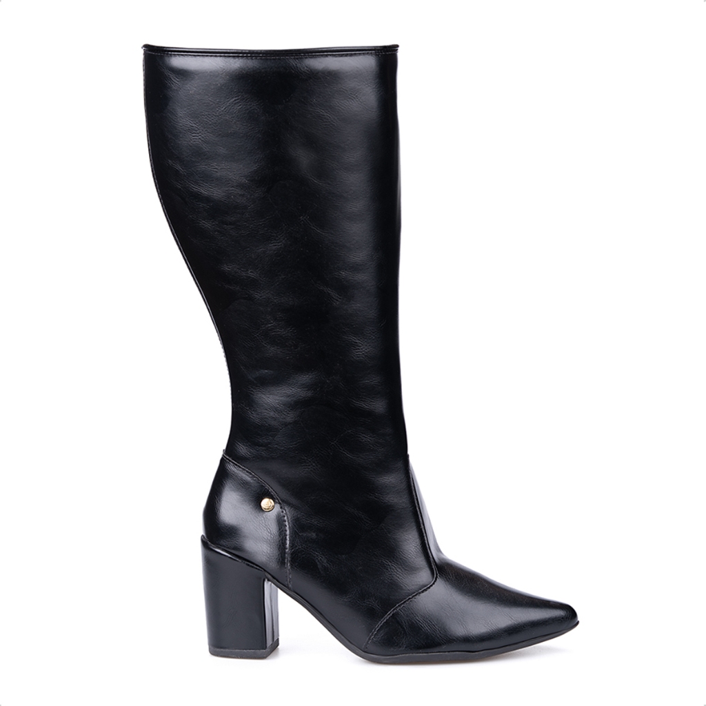 Bota Social Feminina Cano Alto Domidona Bico Fino Salto Alto Bloco