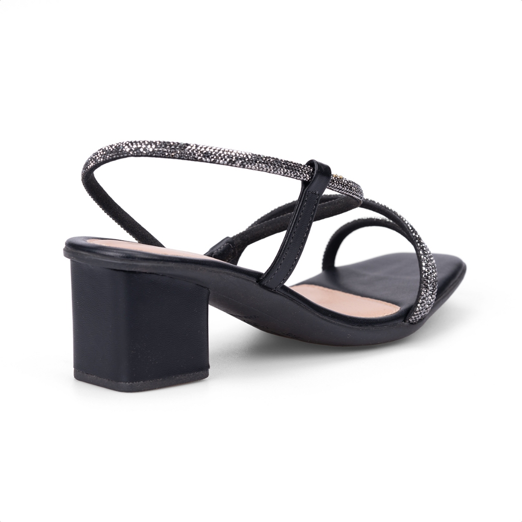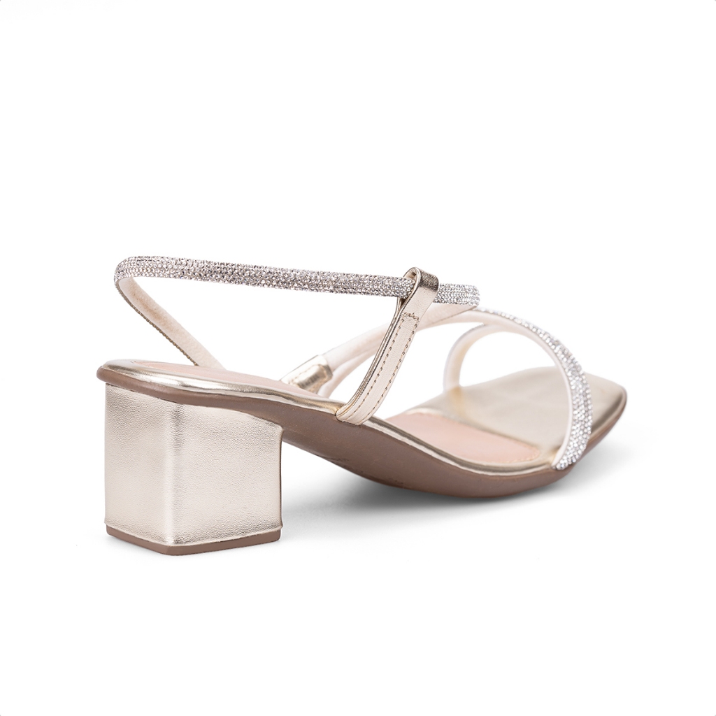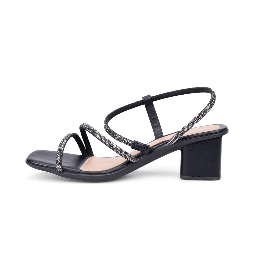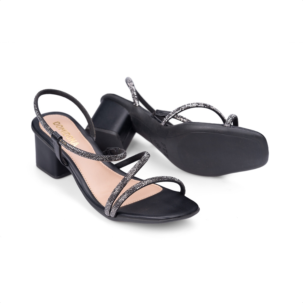 Sandália Feminina Domidona Salto Bloco Tiras Strass Elegante