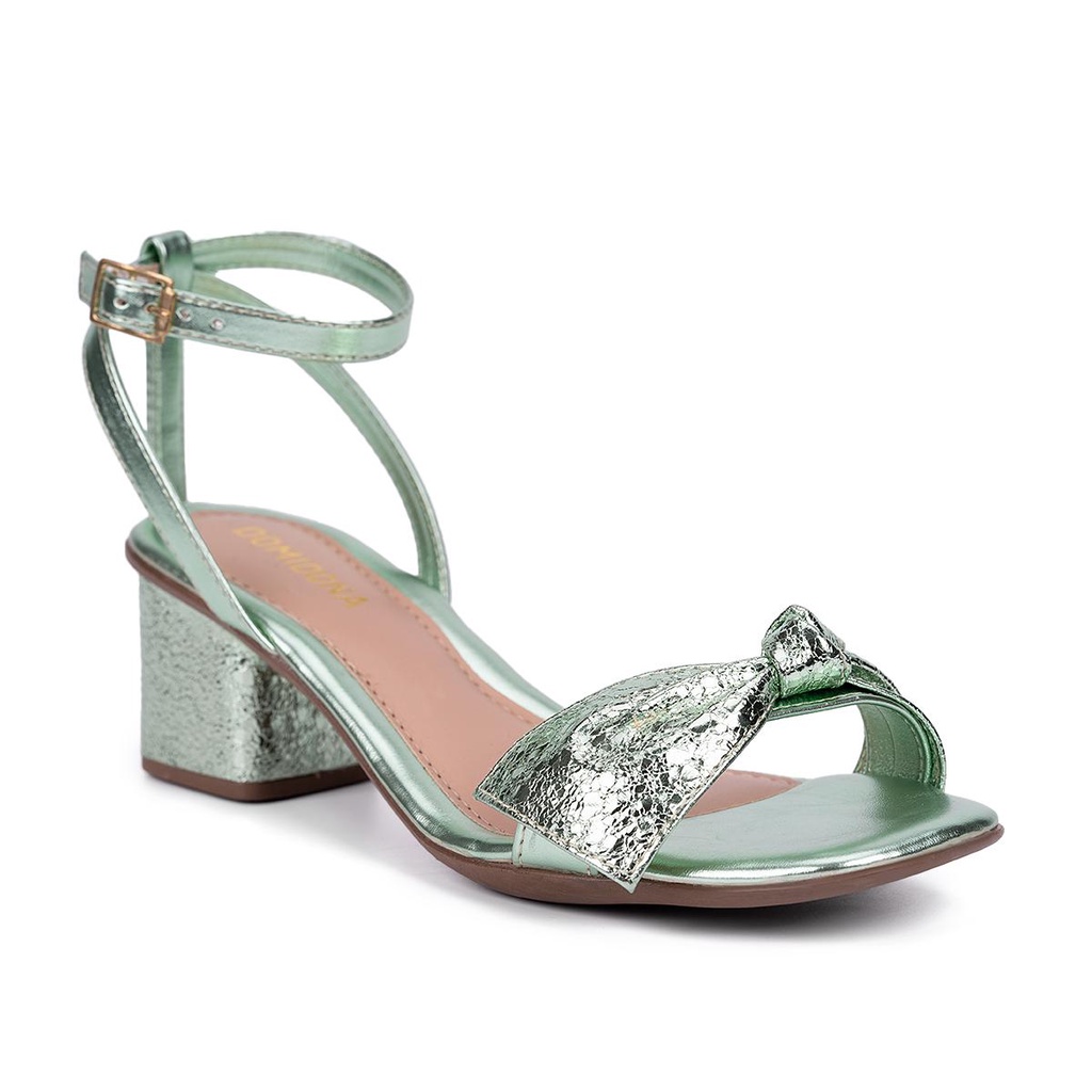 Sandália Feminina Domidona Salto Grosso Laço Textura Brilhante Moda