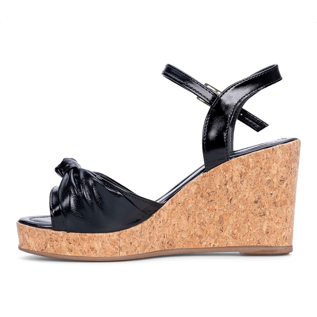 Sandália Feminina Domidona Anabela Salto Amadeirado Laço Delicado