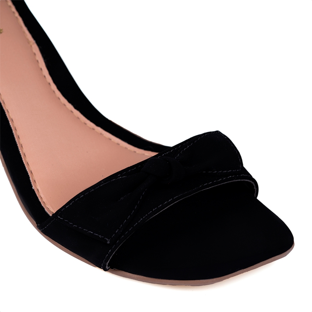 Sandália Feminina Domidona Salto Bloco Laço Bico Quadrado Tira Nó