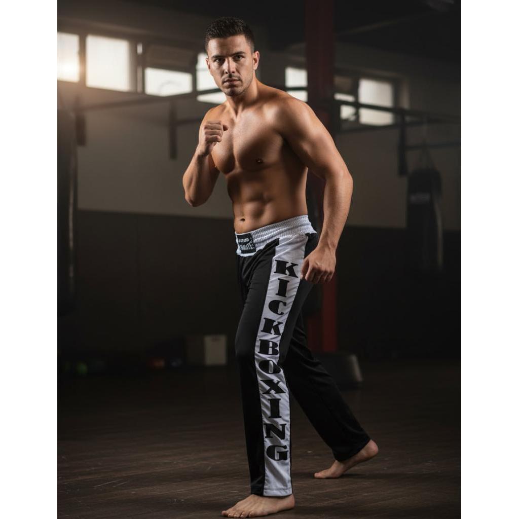 Calça KickBoxing Poliéster e Elastano Adulto Preta/Branca - UC