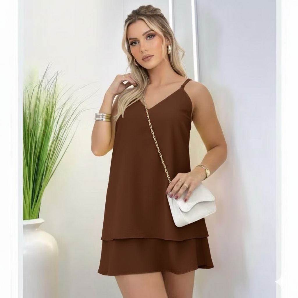 Vestido Feminino Curto de Alça Soltinho Elegante com Babado e cores Candy Colors Verão Duna Alcinha