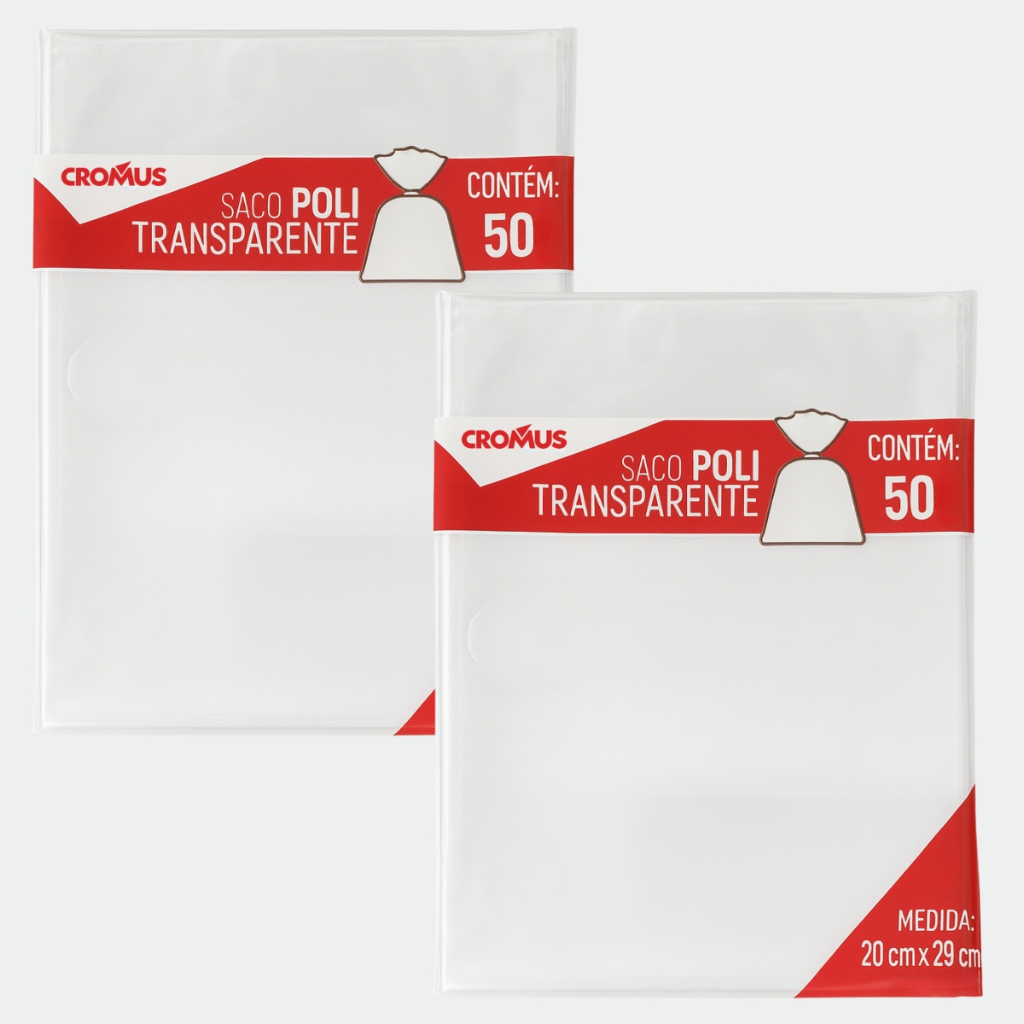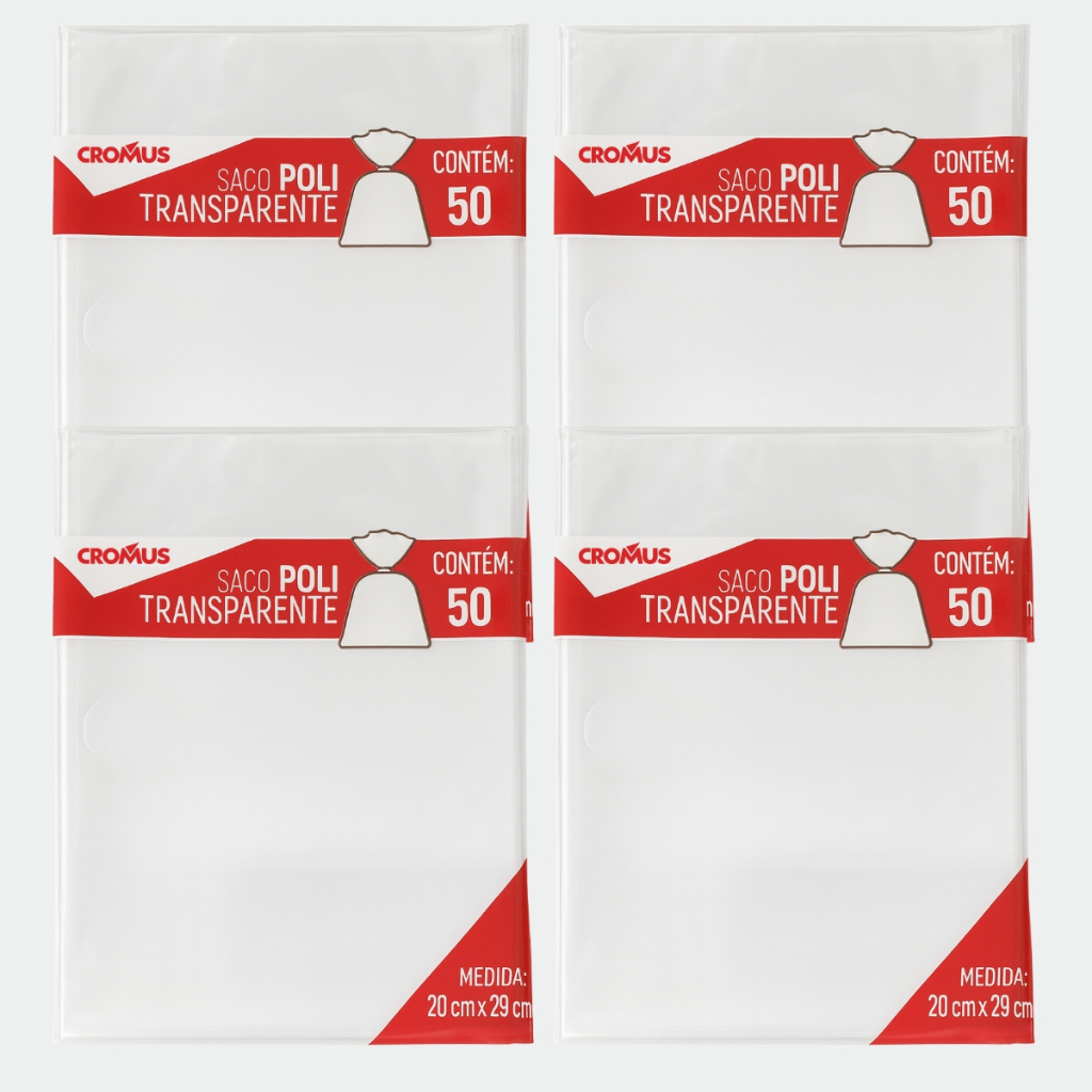 Saco Poli Transparente Incolor 20X29CM De 50 a 200 Unidades Cromus