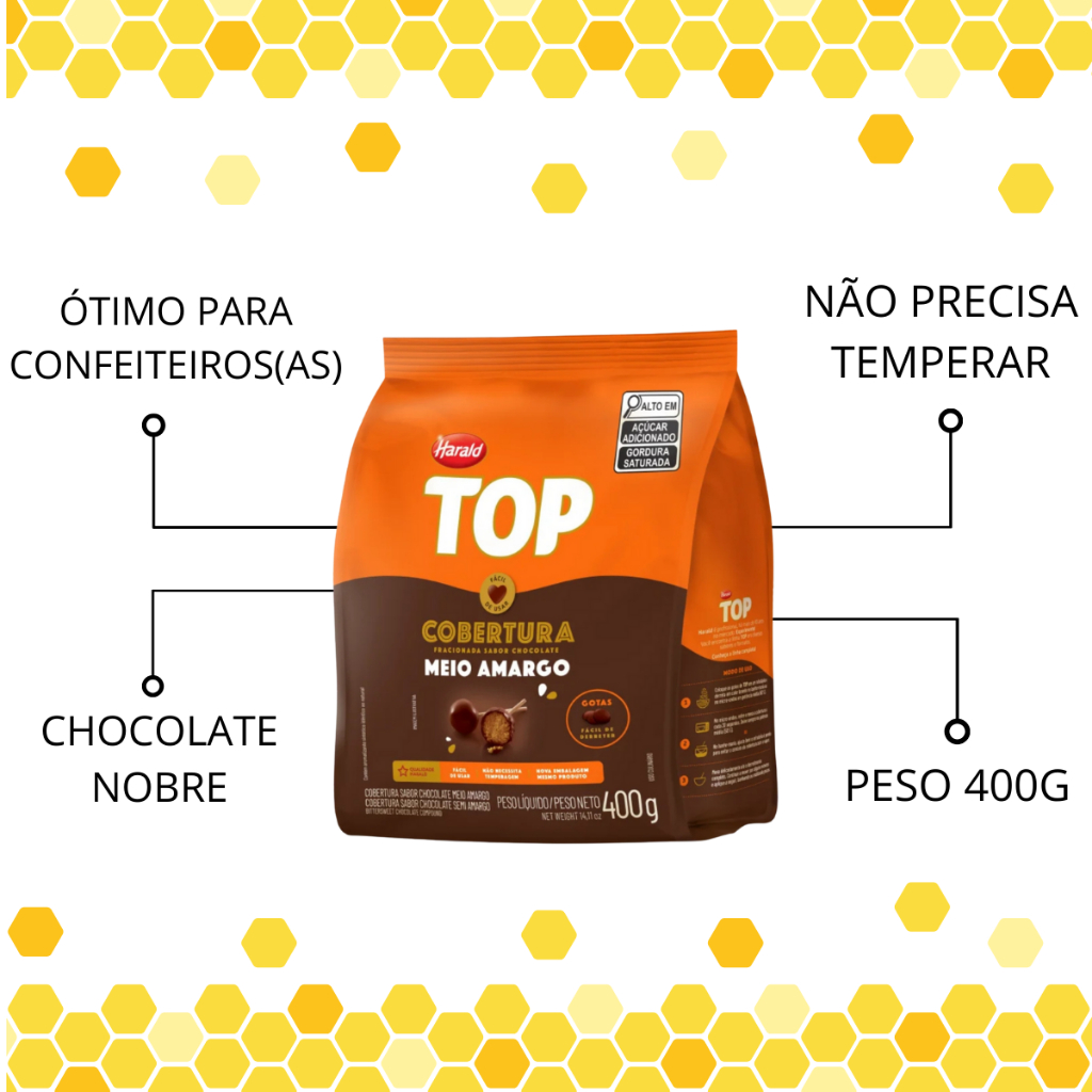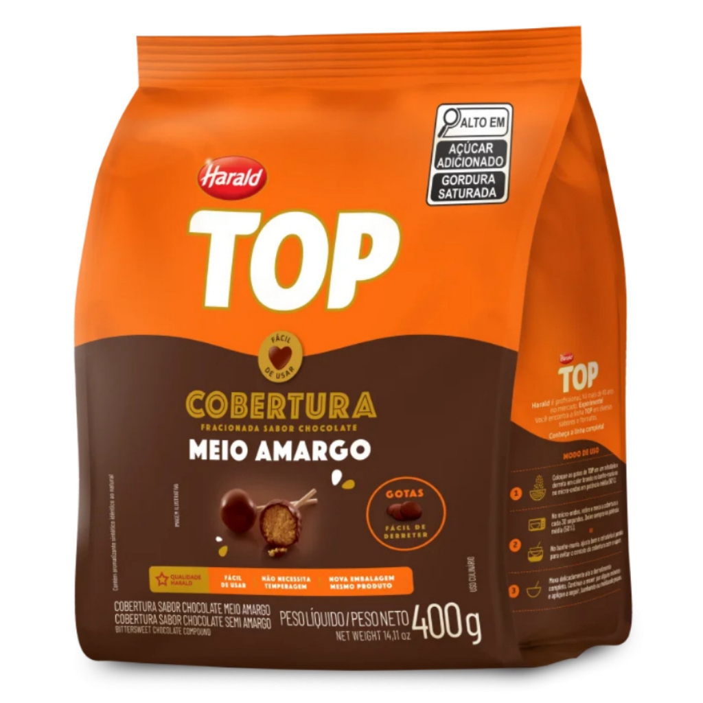 Cobertura Top Chocolate Meio Amargo em Gotas 400g Harald