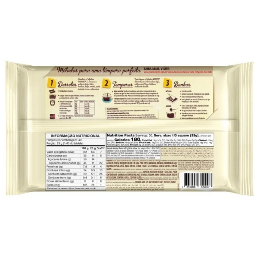 Barra De Chocolate Cobertura Branco 1kg - Garoto