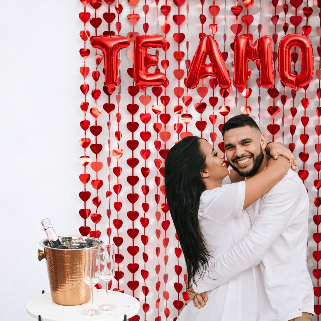 Cortina Painel Corações Vermelhos – Decoração Romântica Dia dos Namorados Dia das Mães