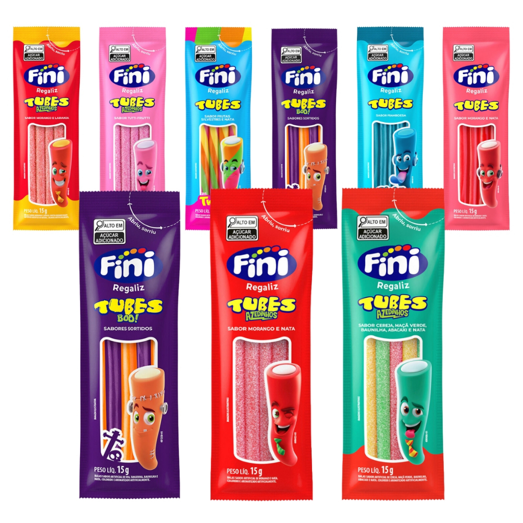 Kit 20un a 50un Pacotes Bala Fini 15g Cada – Sabores Sortidos Tubes e Temáticos