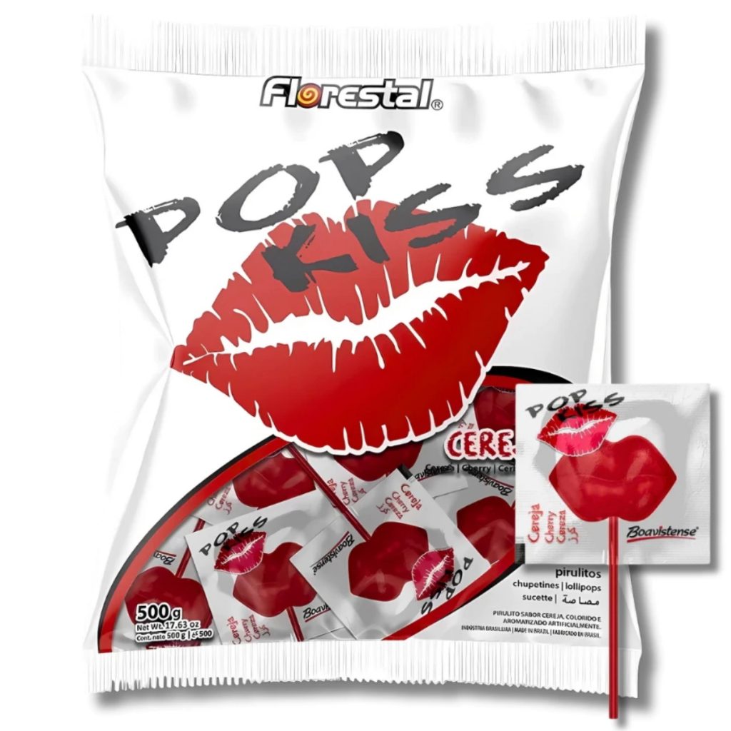 Pirulitos Pop Kiss Cereja C/50 Unidades Florestal Doces Nostálgico Formato De Boca