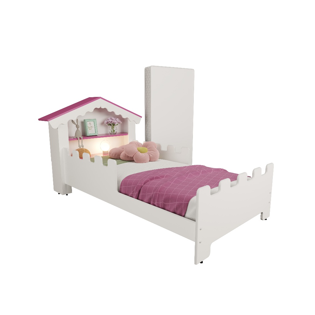 Cama Casinha Infantil com Colchão Incluso Castelo Menina Montessoriana Quarto Temático Seguro