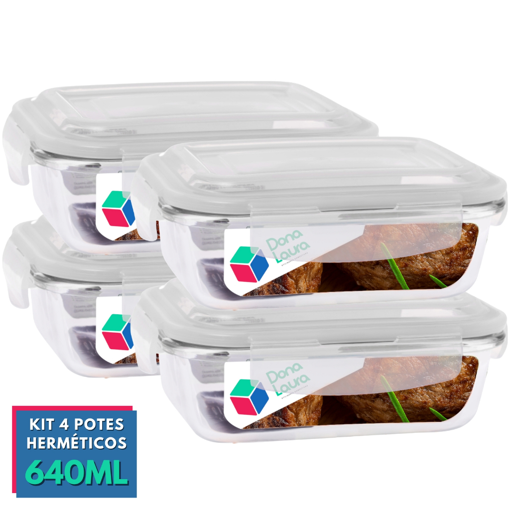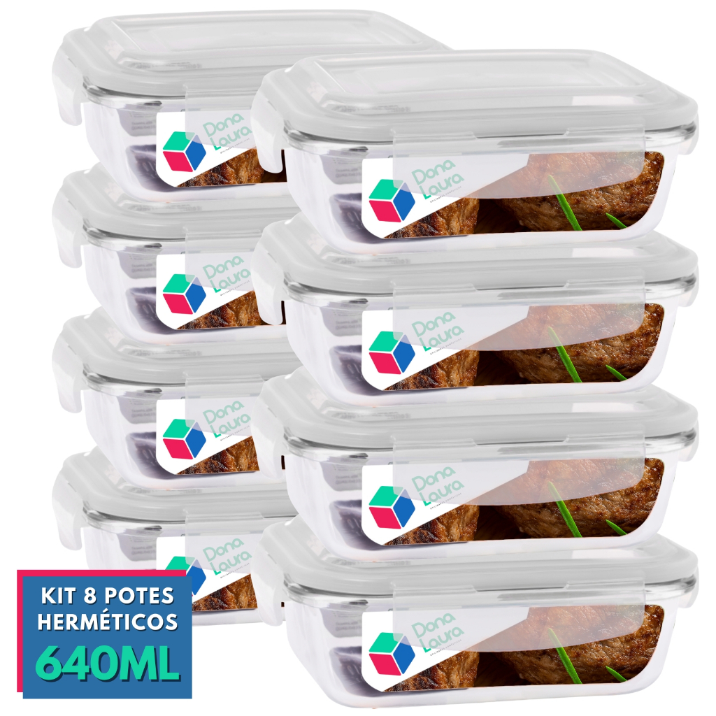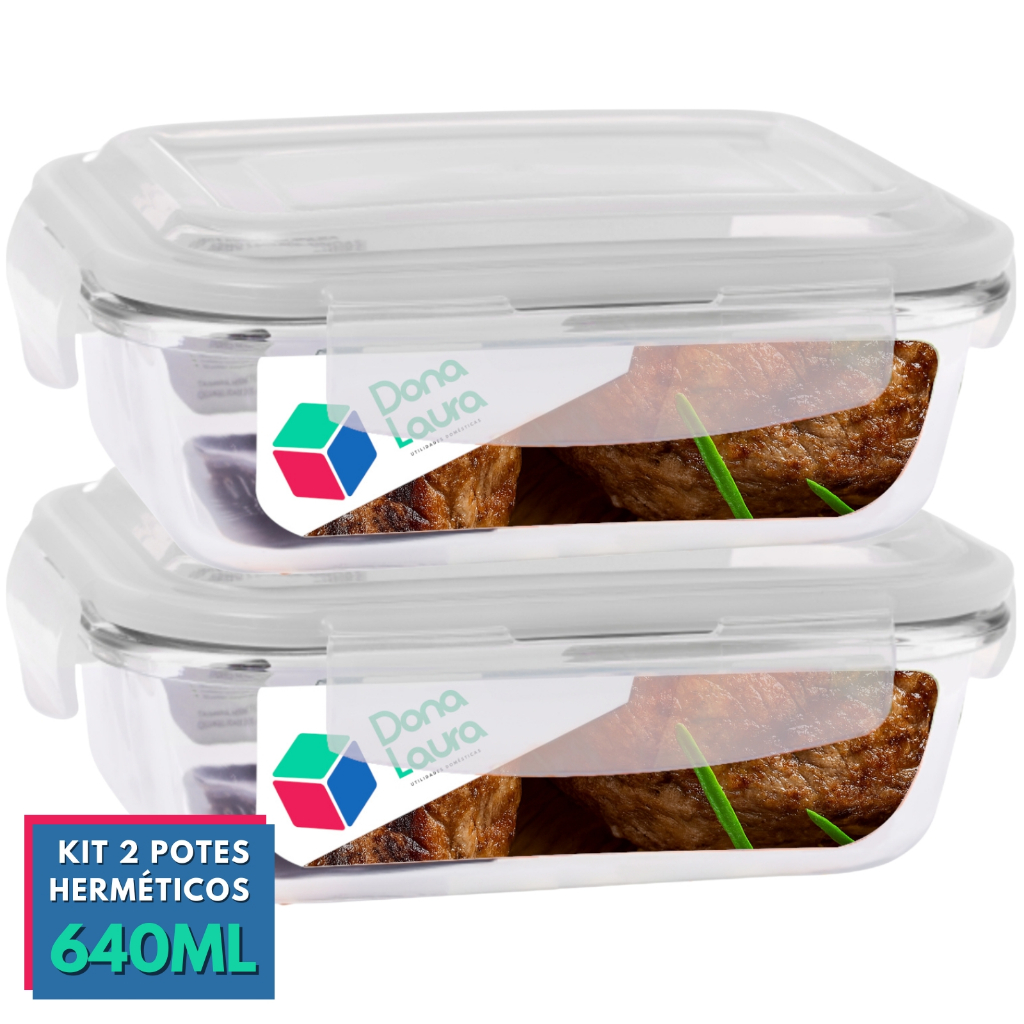 Kit 2 a 10 Potes de Vidro 640ml Hermético Marmita Fit com Tampa 4 Travas - Dona Laura