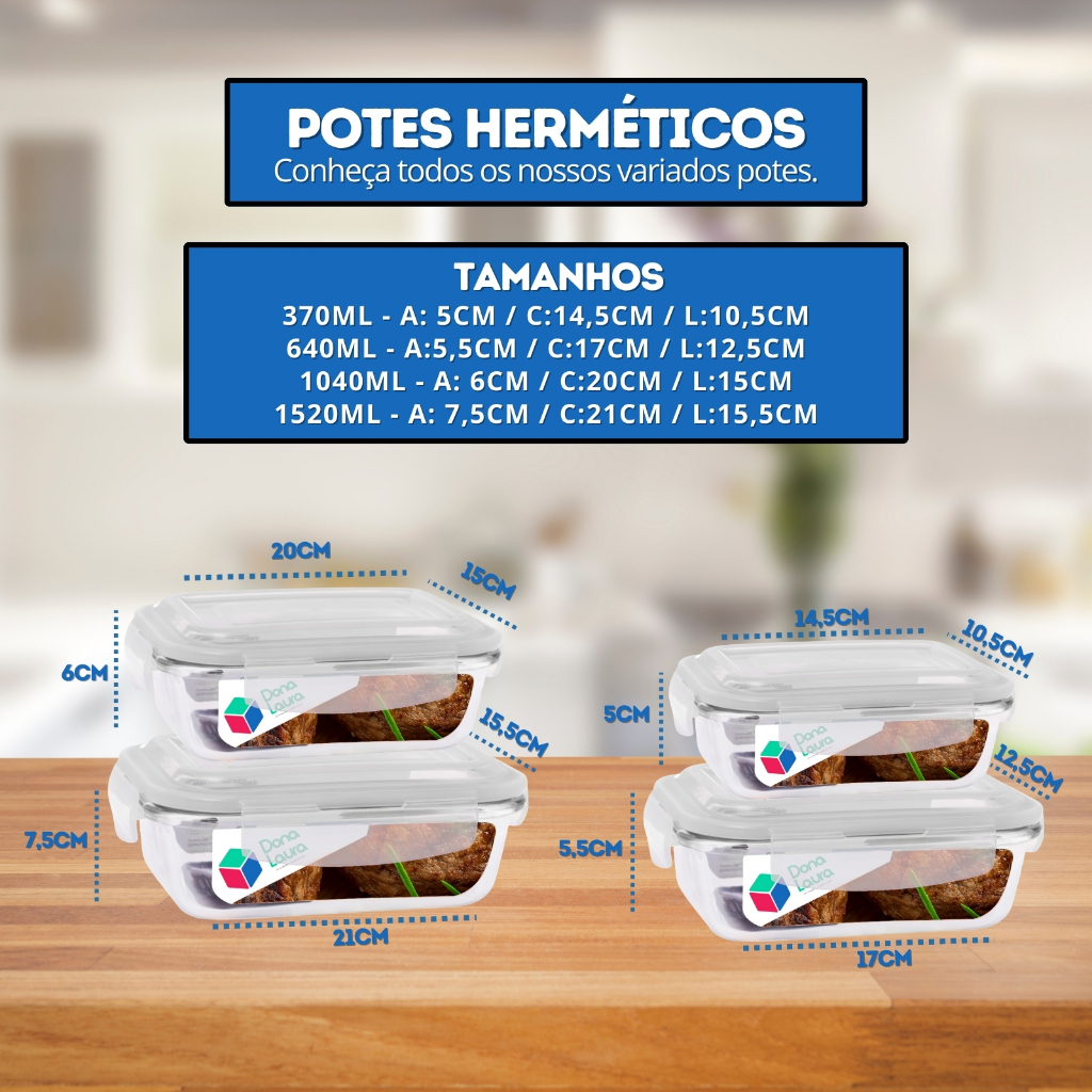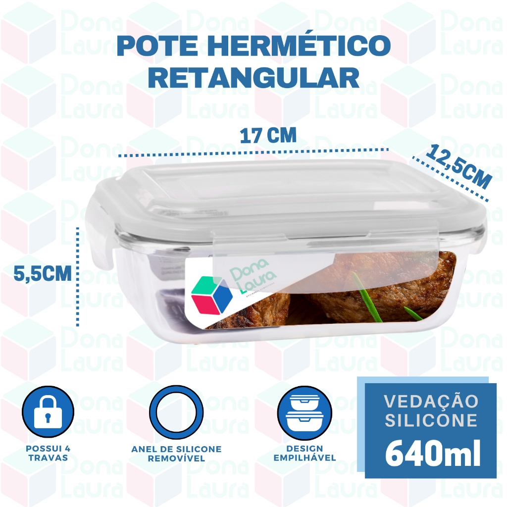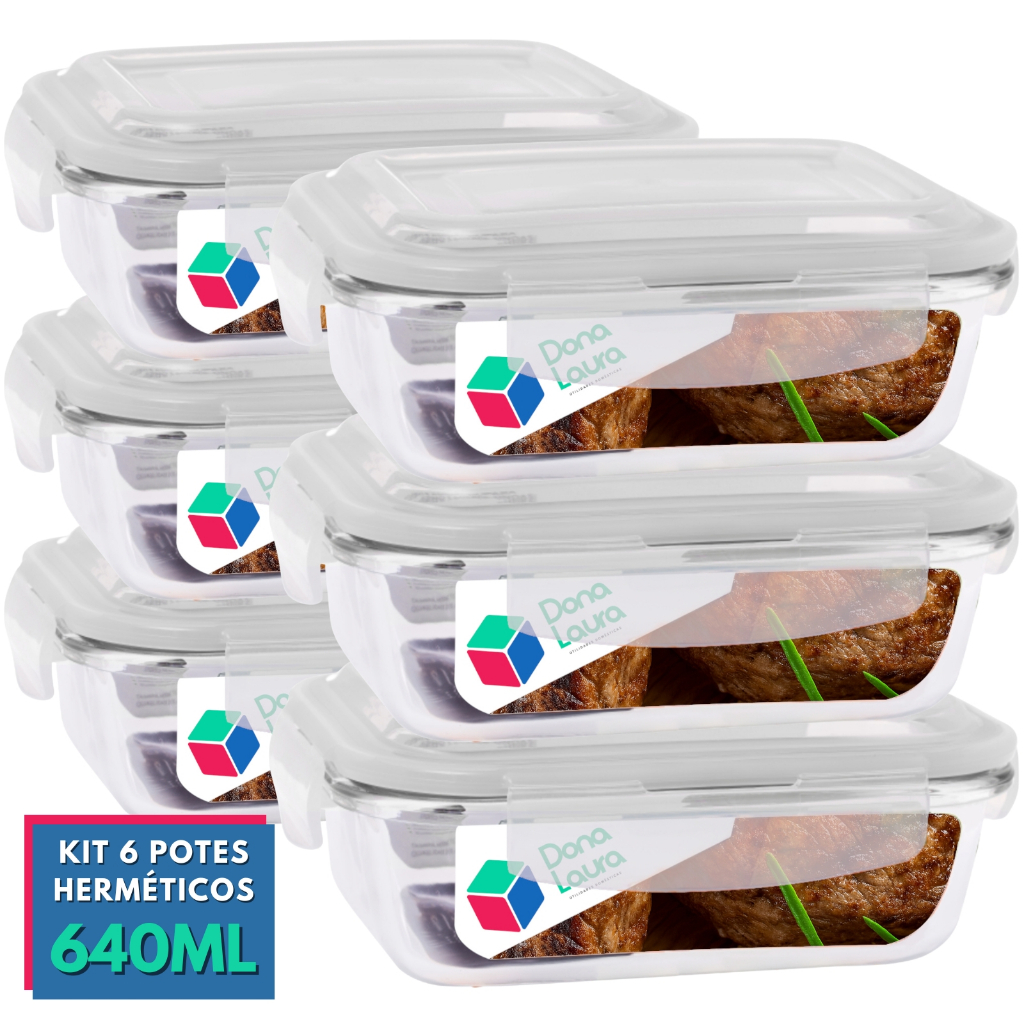 Kit 2 a 10 Potes de Vidro 640ml Hermético Marmita Fit com Tampa 4 Travas - Dona Laura