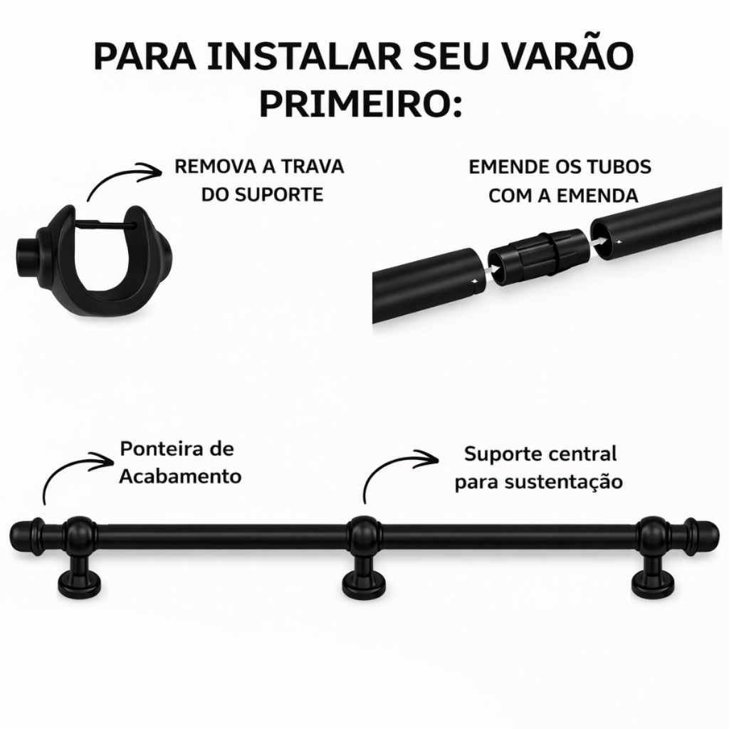 Varão De Cortina Simples 3 metros 19mm Para Quarto Sala Em Aço Ferro