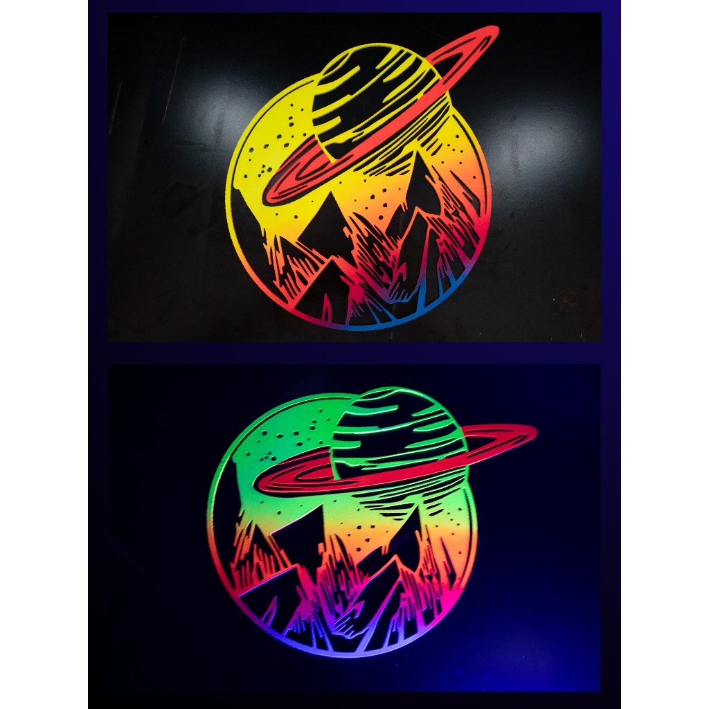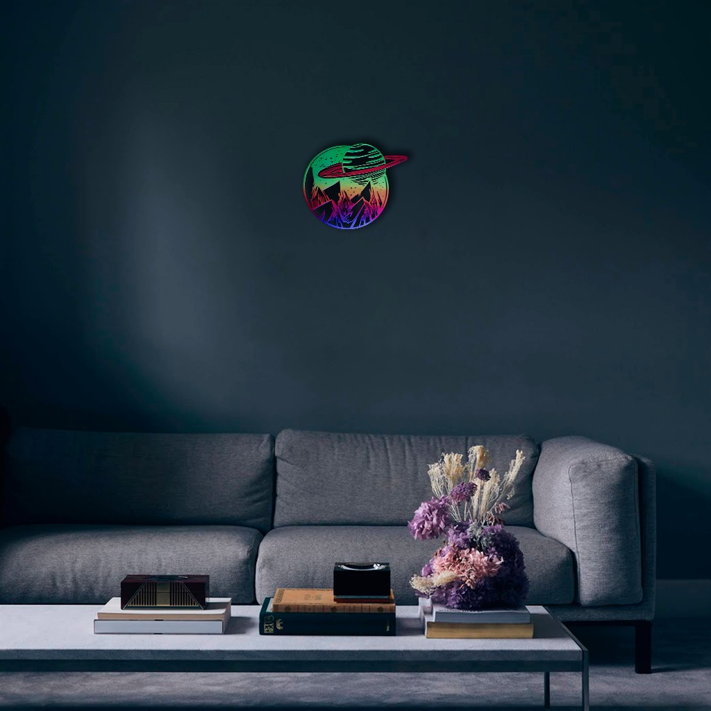 Saturno em Paisagem - Arte em MDF - Neon UV
