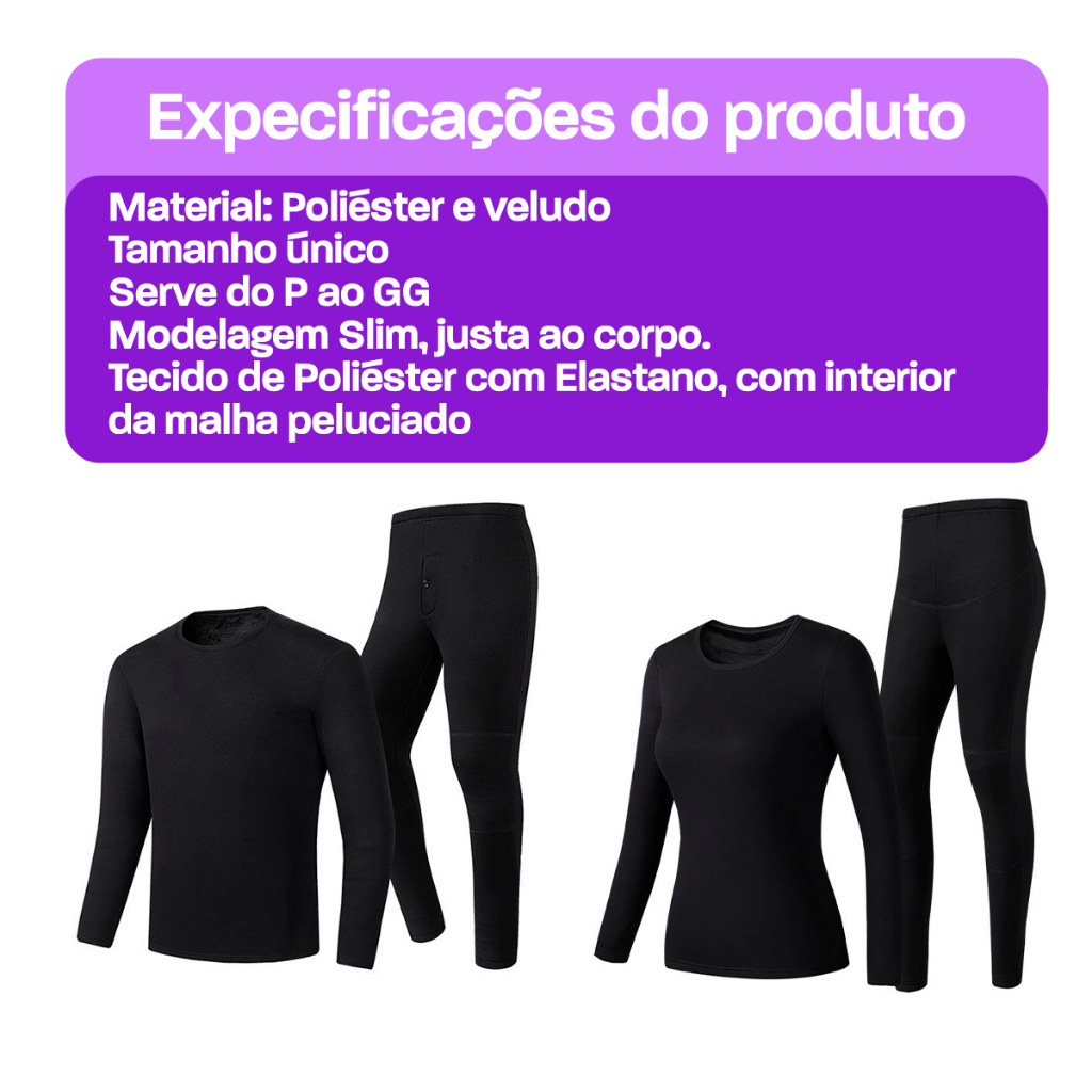 Conjunto Segunda Pele Térmica Flanelado Frio Intenso Preto Proteção Masculino Feminino Unissex