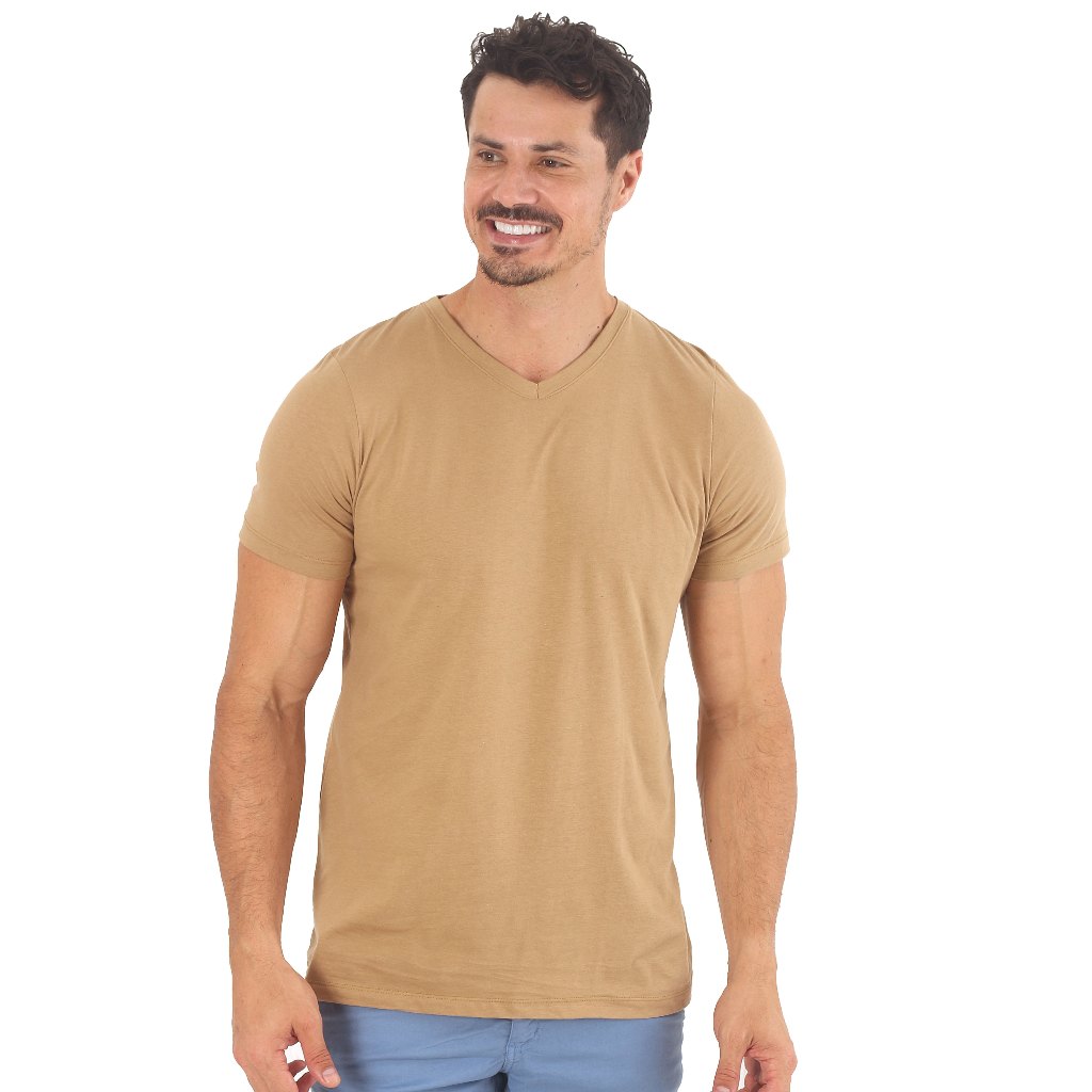 Camiseta Masculina Decote em V Básica Camisa Manga curta 100% Algodão