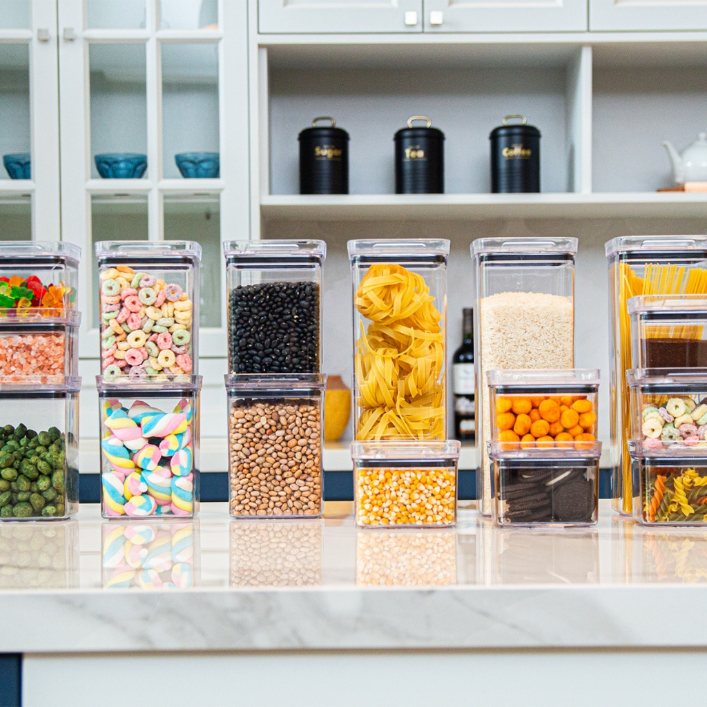 Kit até 17 Potes Herméticos Com Tampa Quadrados Empilháveis Acrílico
