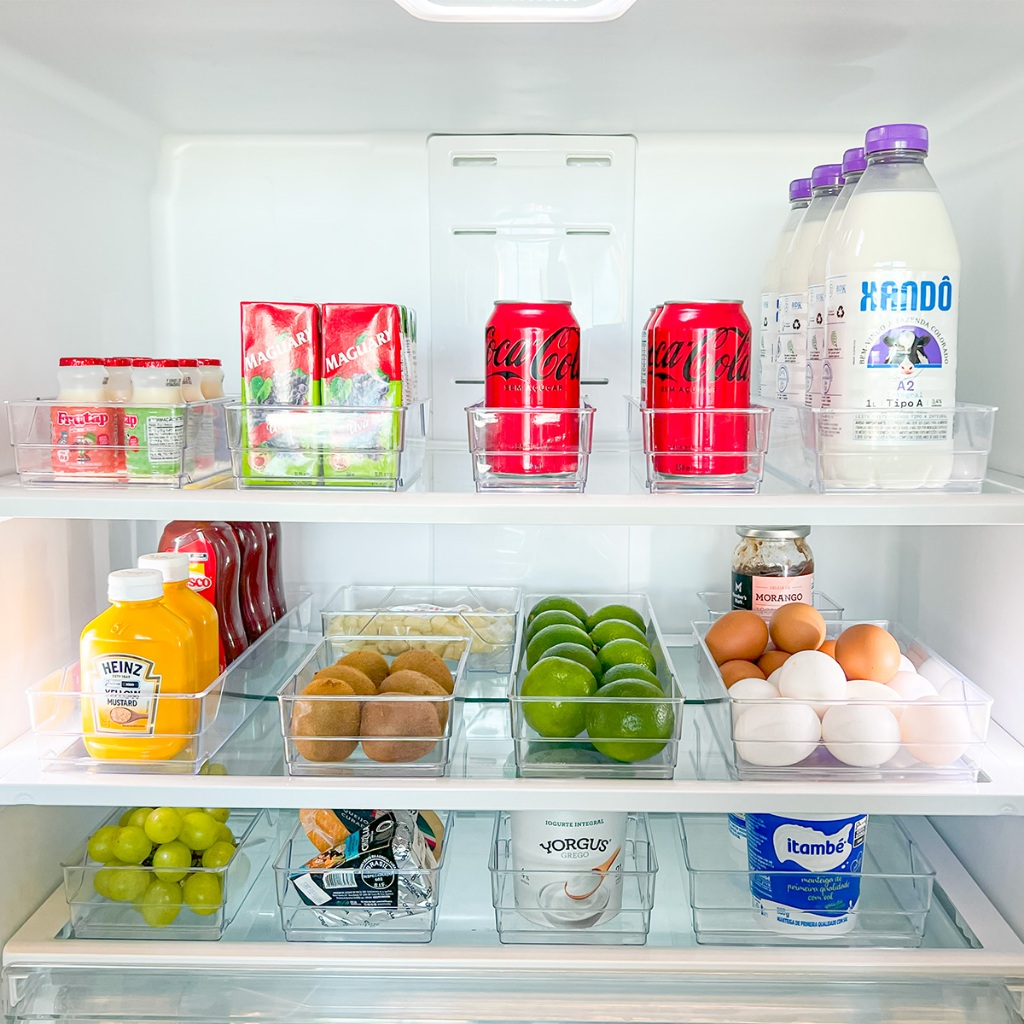 Kit 10 Organizadores Acrílico Transparente Empilhável Modular para Gavetas, Geladeiras Organização