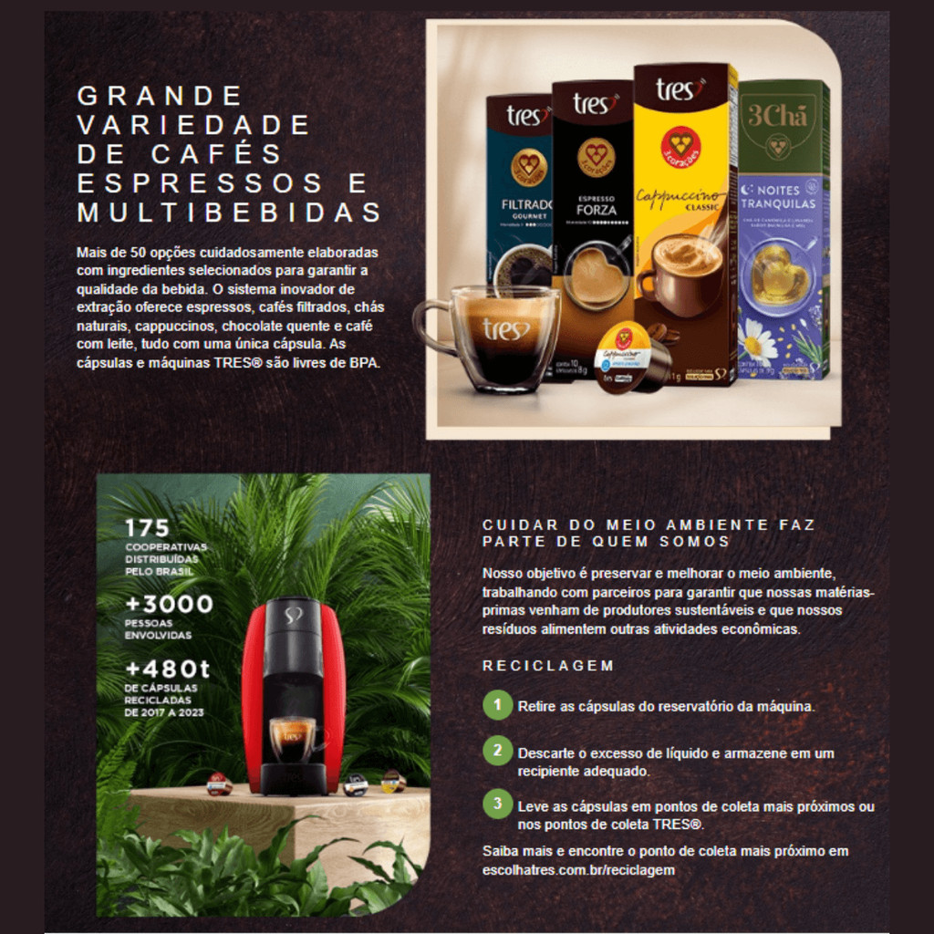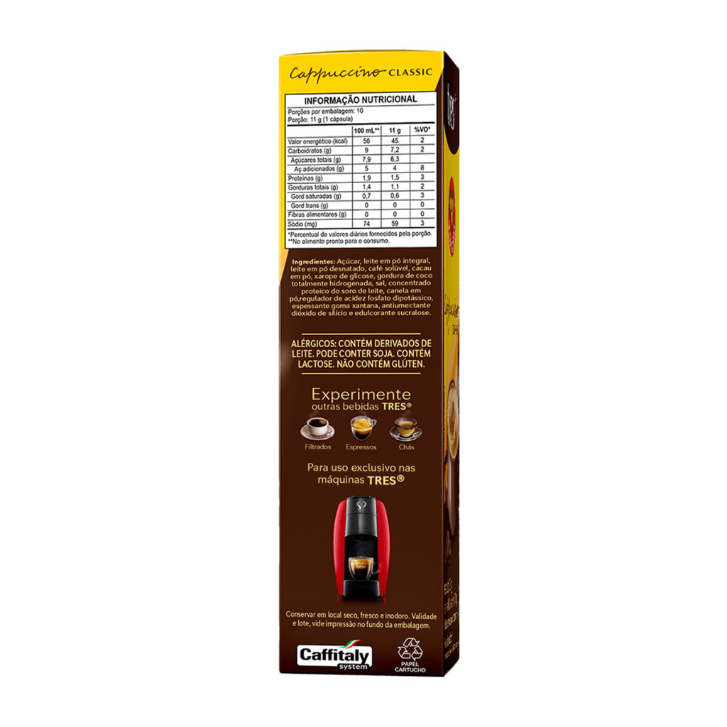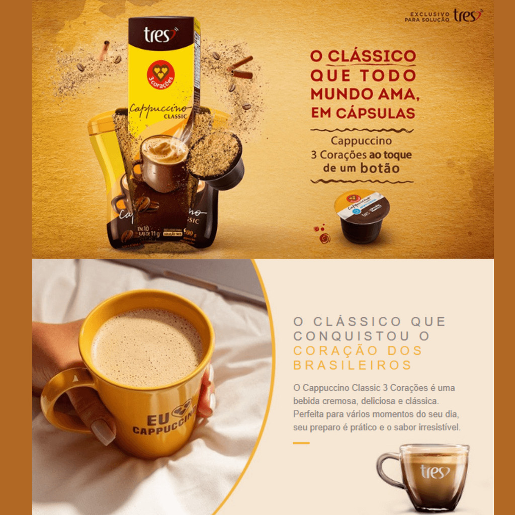 3x Cápsula de Café Tres 3 Corações Cappuccino Classic 10 Unidades